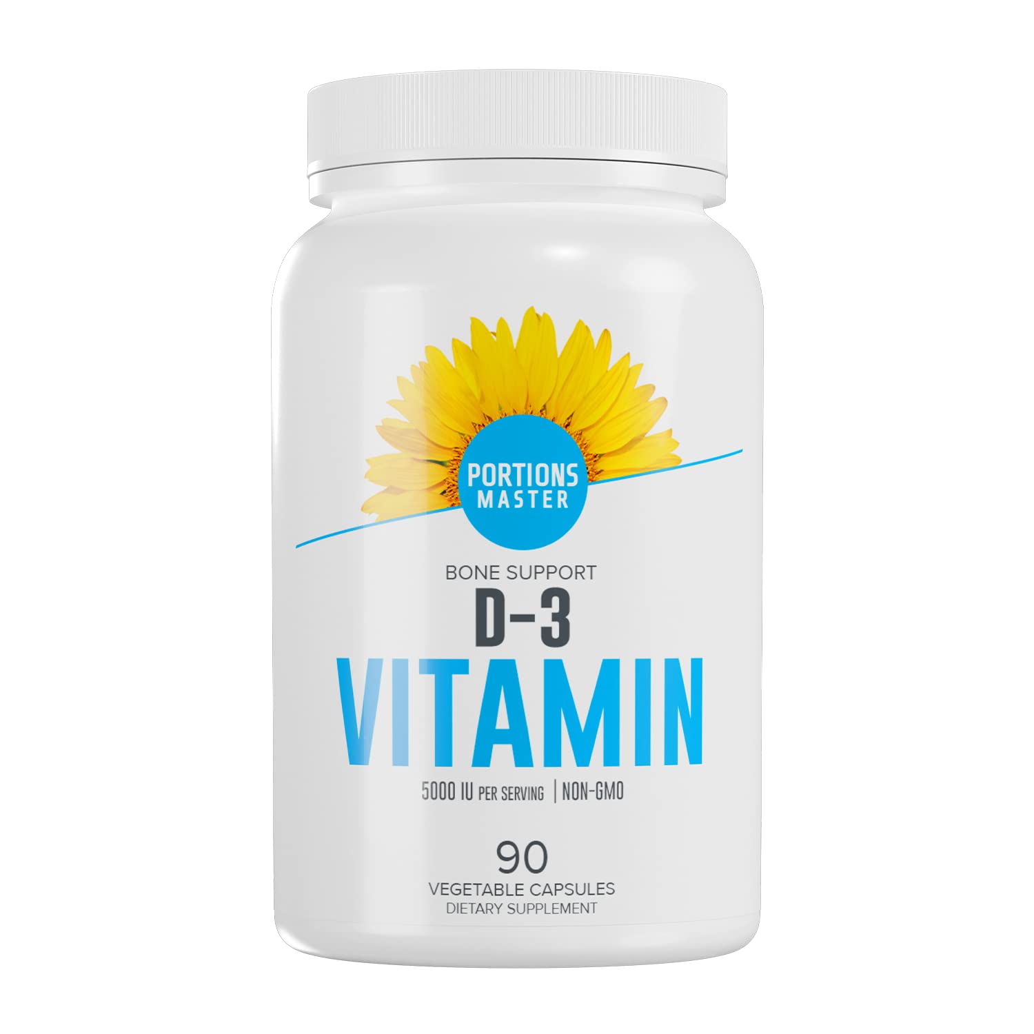 Portions Master Vitamin D3 5000 IU High Potency Cholecalciferol Supplement,Supports Bone Health, Immune Function & Mood, Non-GMO, Gluten-Free (90 Vegetable Capsules)