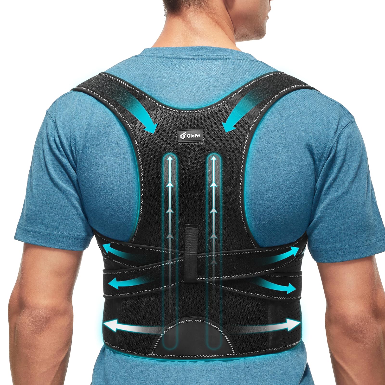 EASILY ADJUSTABLE - Glofit back posture brace for women and men ensures hassle-free wearing, allowing you to effortlessly put it on or take it off without any assistance. Unlike alternative options, our shoulder straps and Waist Strap can be easily adjusted to accommodate individuals of all body types. SUPERIOR COMFORT TO WEAR - Back brace is crafted using soft and breathable fabrics, to prevent stuffiness and excessive sweating on your back while wearing a back brace. You can easily wear it even under your clothes, and conquer your day in a pain-free fashion. INNOVATIVE DESIGN- The Posture Corrector with "X"-shaped cross-back straps offer exceptional support for your back and shoulders, Equipped with 2 removable fiber bar support poles, aligning your back, strengthening the neck and shoulders, and promoting a healthier lumbar spine. DEVELOP CORRECT POSTURE - Start wearing our back straightener for 30-60 minutes per day and then raise the time to several hours at a time. After several months, you will notice you stand taller, look healthier and feel absolutely better - all on your own!. SAY GOODBYE TO BACK PAIN - Combines the benefits of a back support and shoulder posture corrector, aims to relieve upper and lower back pain and make long working or standing hours a breeze to get through. By aligning properly your posture, it takes pressure off of key areas, thus alleviating back, neck, shoulder and clavicle pain.