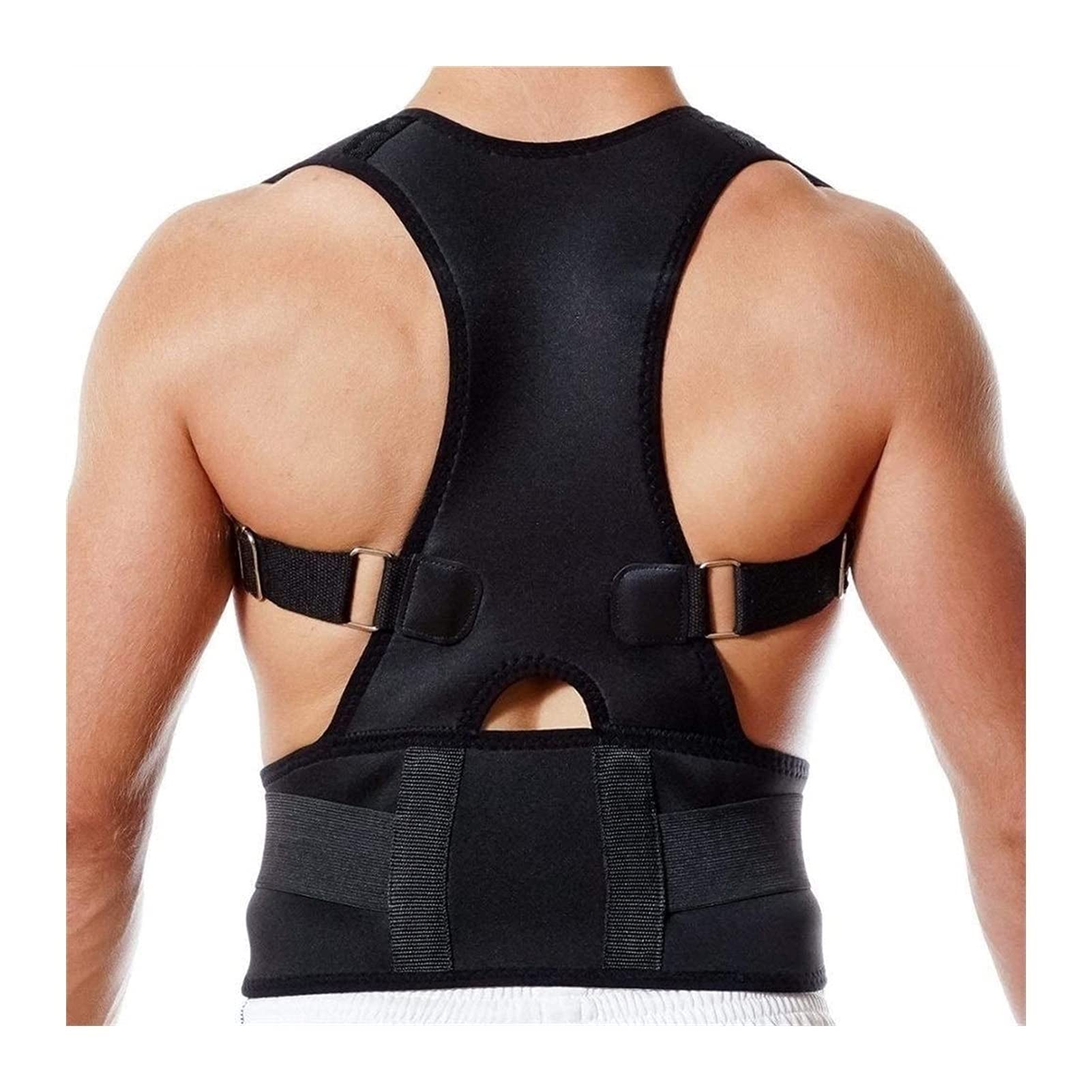 Specifications: Color: Black Gender: men Women Used for: Back support Material: breathable, elastic, thin Suit: Working, Walking, Exercising and relaxing SIZE S Waist: 65 - 77 cm 25.59 - 30.31 inch M Waist: 77 - 88 cm 30.31 - 34.65 inch L Waist: 88 - 98 cm 34.65 - 38.58 inch XL Waist: 92 - 105 cm 36.22 - 41.34 inch 2XL Waist: 110 - 120 cm 43.31 - 47.24 inch 3XL Waist: 120 - 130 cm 47.24 - 51.18 inch 4XL Waist: 130 - 140 cm 51.18 - 55.12 inch Note: Due to manual measurement, please allow an error of 1-2cm Feature: 1.This Back Brace Posture corrector is easy to use and comfortable, elastic. 2.Help you to correct poor posture, keep shoulders back, correct scoliosis and other malformed spinal curvatures. 3. Adjust the in the back to the tightness most suitable to yourself 4. Helps to Relieve Posture Related Back Pains, Shoulder Pains,and Headaches Package include: 1X Back Posture CorrectorAdjustable: The back support can be continuously fixed to give you a sense of stability. Based on ergonomic design, our posture corrector is equipped with a fully adjustable shoulder strap. Just pull or loosen the straps to fit your body for best results. Comfortable and breathable material: Our back support supports are made of high-quality materials, which are comfortable and breathable. Double tension waist belt: The support bar can provide proper support along the waist curve, and with the integrated posture correction design, it can help straighten the waist and back. Unique back support: The cross-adjusting straps on the straps comprehensively exert force from the shoulders and armpits, so that the force is concentrated in the center of the spine, and then diverted to the shoulders, back and waist, so as to maintain a reasonable stretch of the adjustment straps. Waist, shoulder and back protection: According to the principle of ergonomics, a soft and breathable pad is specially added to the posture corrector to increase the area of the shoulder force, fit the shoulder curve, and gently protect the shoulder.