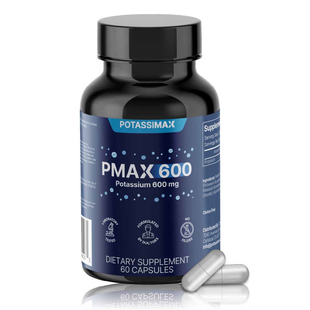 Doctor-Formulated, Lab-Tested Clean Ingredients: PMAX600 is manufactured in California under medical supervision, lab-tested for purity, and free from fillers or artificial additives. Backed by a 100 satisfaction guarantee, it's a doctor-trusted potassium supplement you can rely on. Supports Heart Wellness Vascular Function: Studies show that higher potassium intake helps support normal potassium levels and vascular function. PMAX600 delivers a safe, high-absorption dose, ideal for adults managing electrolyte balance or heart wellness. 600mg High-Dose Potassium Per Serving: With 600mg of elemental potassium in just two capsules, PMAX600 provides over 6x the amount found in typical supplements—making it easier to meet daily potassium needs without swallowing multiple pills or worrying about underdosing. Clinically Balanced pH for Gentle Digestion: Unlike harsh, single-type potassium supplements, PMAX600 uses both acidic and alkaline forms to create a pH-balanced formula. This helps maintain your body's natural pH while improving potassium absorption and minimizing stomach discomfort. 4-in-1 Potassium Blend for Complete Support: Crafted by a board-certified physician, PMAX600 delivers a unique 4-type blend of potassium citrate, chloride, gluconate, and bicarbonate—clinically studied to support electrolyte balance, kidney function, and normal cellular function.