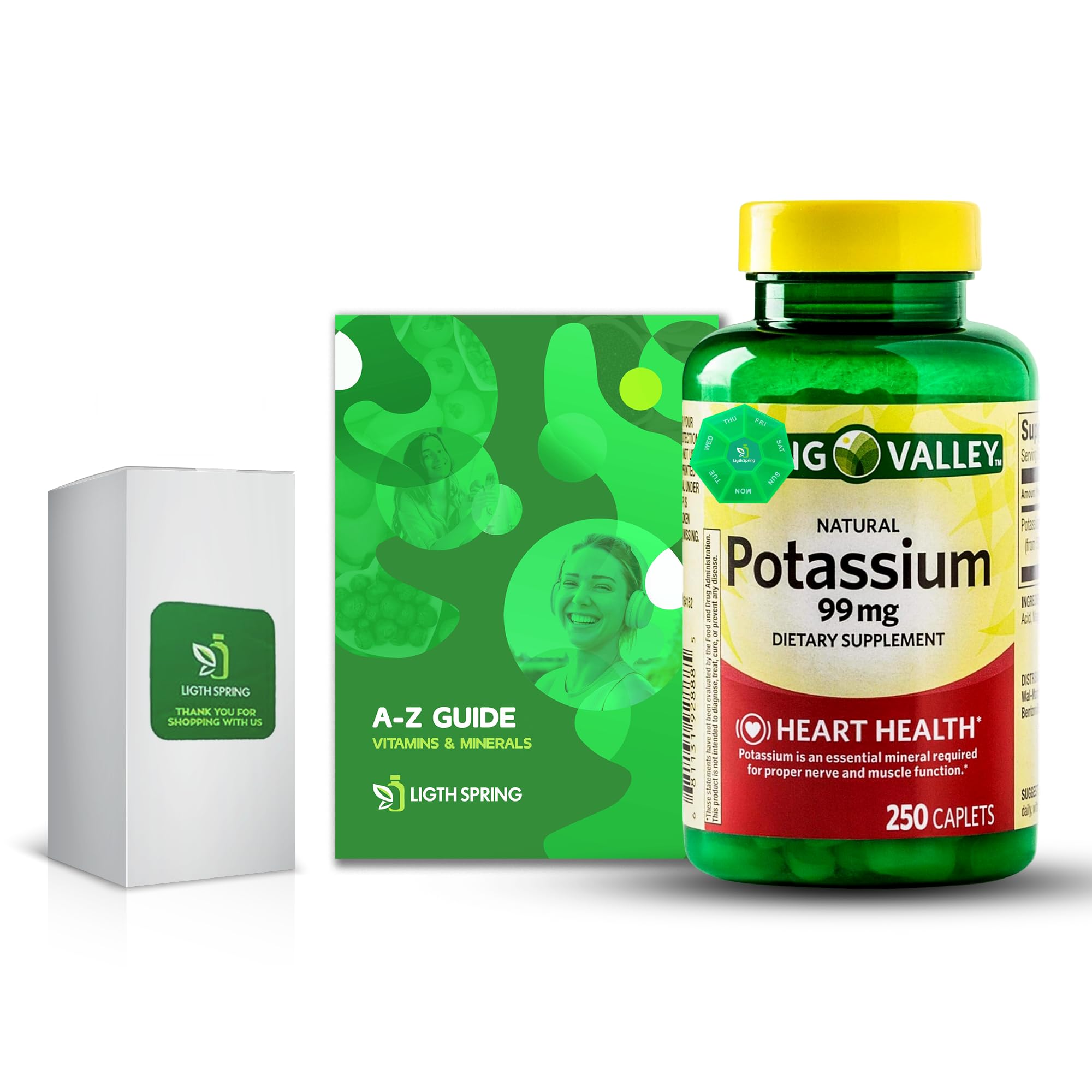 Potassium 99 mg 250 Caplets Bundle with Exclusive Vitamins & Minerals A to Z - Better Light&Spring Guide
