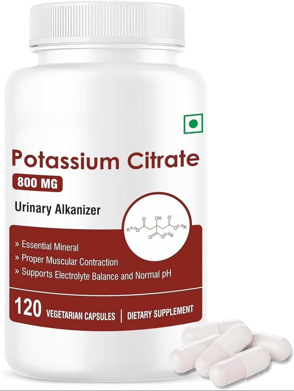 Potassium Citrate 800 Mg I Support Nerve Joint & Bone Health I Helps Manage Electrolyte | for Both Men & Women | 120 Vegetarian Capsules