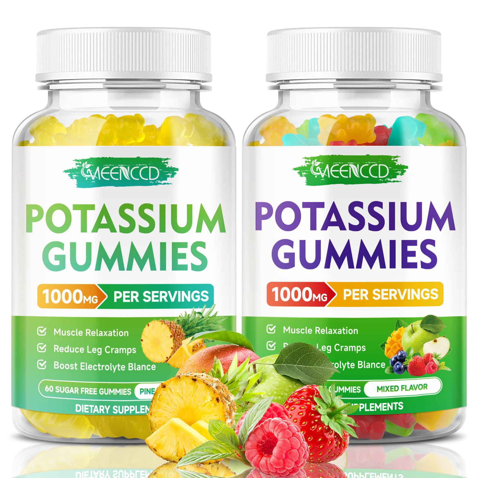 GMP Certified for Quality Assurance: MEENCCD focused on simplifying your health journey. Our high-potency potassium gummies are manufactured in a GMP-certified facility and undergo rigorous third-party testing to ensure the standards of safety. Vegan, Non-GMO: Crafted with a commitment to purity, our potassium gummies are vegan, non-GMO, sugar-free, and gluten-free. They are easy to chew and swallow, making them suitable for adults, children, women, and men. Delicious and Digestible Chewables: Experience the natural fruit flavor of our organic potassium supplement gummies. These pectin-based potassium gummies are gentle on the stomach, ensuring no discomfort. Take two gummies daily, and chew thoroughly before swallowing to enhance absorption. Multifaceted Health Benefits: Potassium citrate plays a crucial role in maintaining muscle health, reducing leg cramps, and supporting electrolyte balance. It also aids in regulating fluid balance and provides relief from fatigue and constipation, making it an essential mineral for daily wellness. Premium Potassium Citrate Formula: Our Potassium Supplement 1000mg features a potent dose of potassium citrate per serving, designed to meet your daily potassium requirements. This potassium supplements are efficient form of potassium to support overall health.