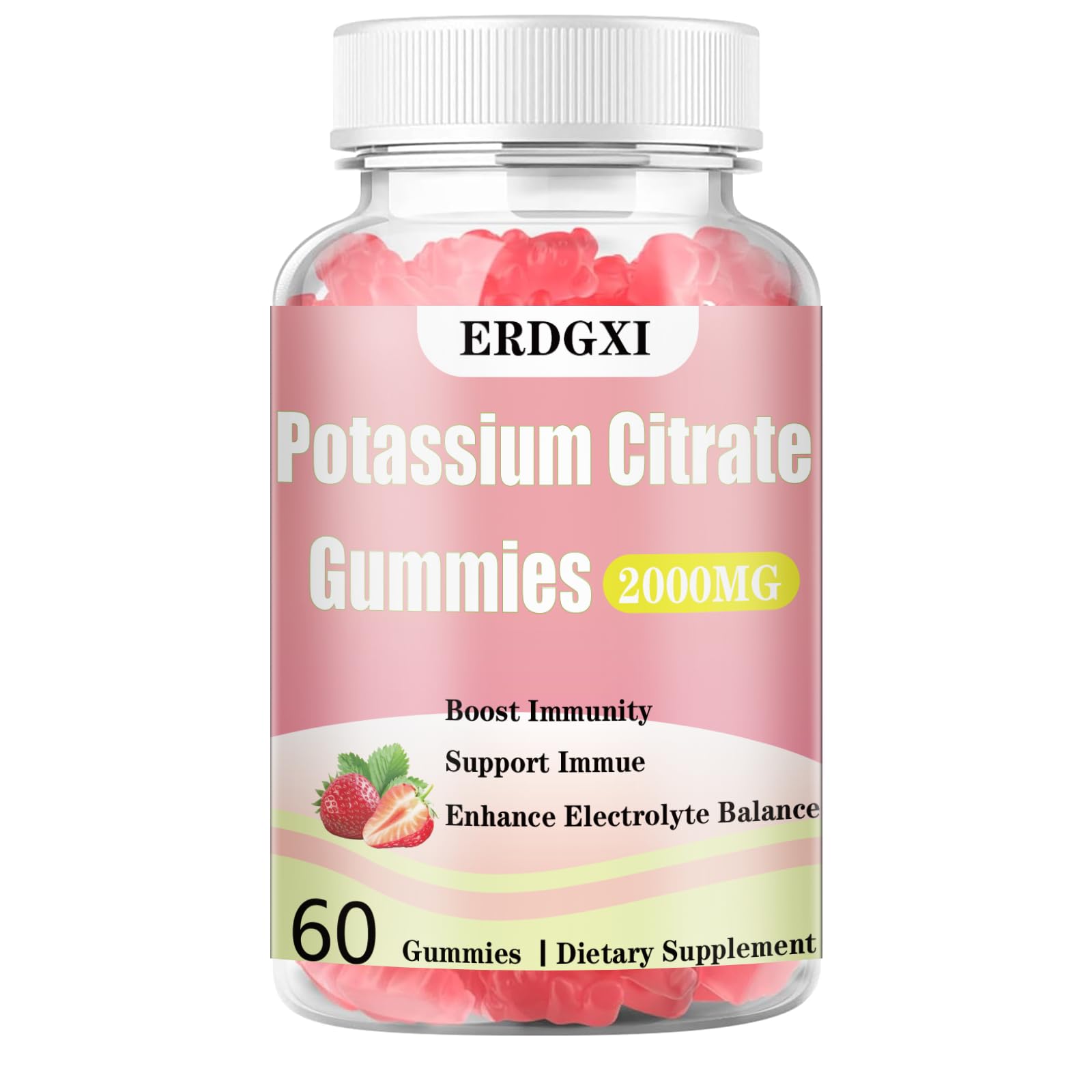 Premium GMP-Certified Quality:Made in a GMP-certified facility and tested, these potassium citrate gummies provide a reliable potassium supplement.The potasium citrate gummies offer consistent quality for everyday health. Tasty Easy to Absorb: Enjoy the refreshing Strawberry flavor of these potassium citrate gummies. Infused with potassium citrate,Vitamin B6,B12,Magnesium Zinc,they are easy to digest, support quick absorption, and promote vitality. Benefits of Potassium Supplement Gummies:The potassium citrate are very important as part of essential minerals for the human body.These potassium citrate gummies are suitable for our daily routine,that can help support health,support electrolyte balance and overall health. Potassium Gummies Sugar Free:Potassium supplement gummies 2000mg are sugar free (no cane sugar),Non-GMO,Gulten-Free,vegan friendly,allergen free .Potassium citrate gummies are based on pectin.Highly absorbable, gentle supplementation, pure and safe. Effective balance of potassium levels: Studies have found that the pH value of human body fluids is closely related to the citric acid value.Potassium citrate can provide a large amount citric acid to balance electrolyte, which is beneficial to human health.