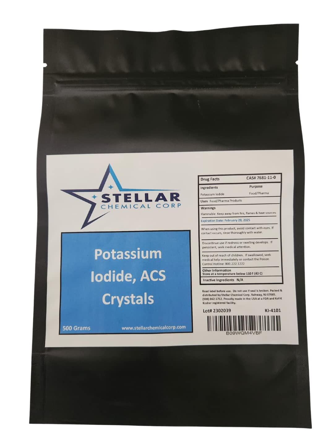 Potassium Iodide USP/ACS Crystals 1/2 Kg (500 Grams) Stellar Chemical Corp Fine Crystal Powder