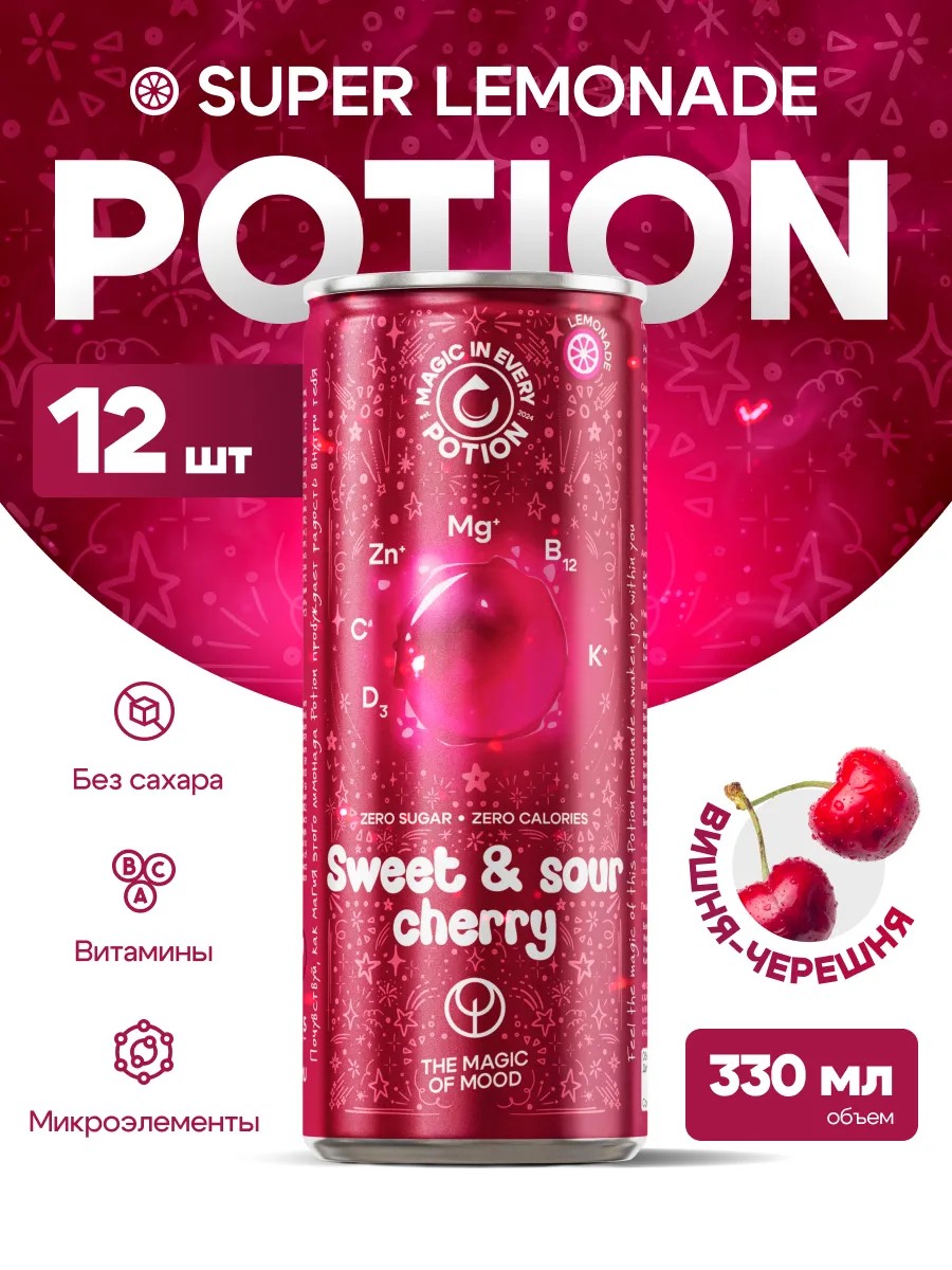 Introducing Potion Smart Drinks – Cherry-Sweet Cherry Lemonade with Vitamins, a true explosion of flavor and health benefits! This functional drink will be your perfect companion throughout the day. Imagine: the refreshing taste of cherries that invigorates and energizes. And best of all, it's completely sugar-free and contains only 0 calories! The lemonade contains a whole complex of vitamins B, C, and D3, as well as dihydroquercetin, known for its antioxidant properties. Potion Smart Drinks are more than just a soda; they're a true treasure trove of nutrients. Enjoy your favorite flavor without worrying about your figure or health. This carbonated drink is an excellent choice for those who value taste, care about their health, and are looking for an alternative to sugary sodas.