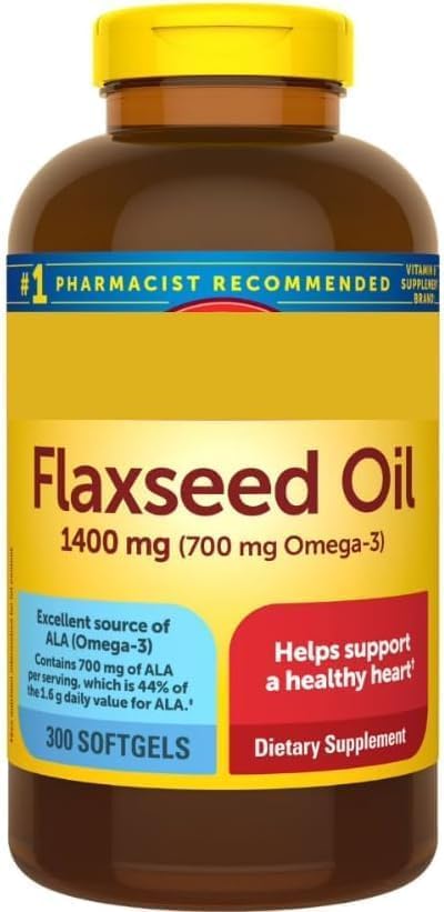This bottle includes 300 softgels with 1400 mg of flaxseed oil, including 700 mg of ALA (Alpha-Linolenic Acid), a plant-based source of Omega-3. Each softgel is ideal for those looking to support their wellness routine with a convenient, fish-free alternative. This formula is free from artificial colors and flavors.
