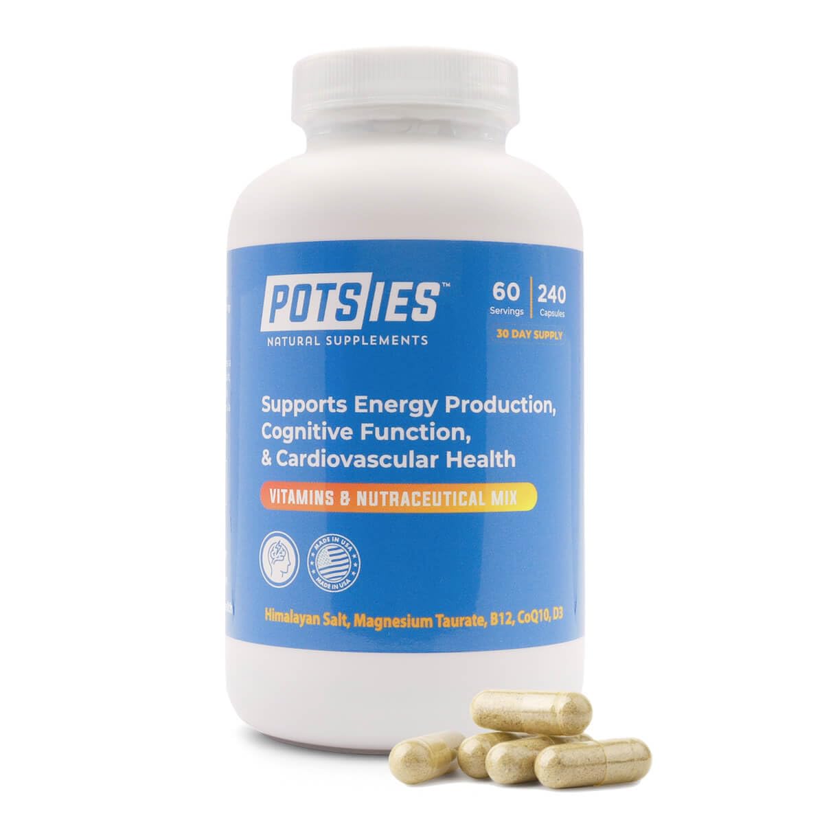 Potsies POTS Supplement Vitamin & Nutraceutical Mix Capsules for Pots Syndrome | POTS Management Essentials | 240 Capsules - 30 Day Supply