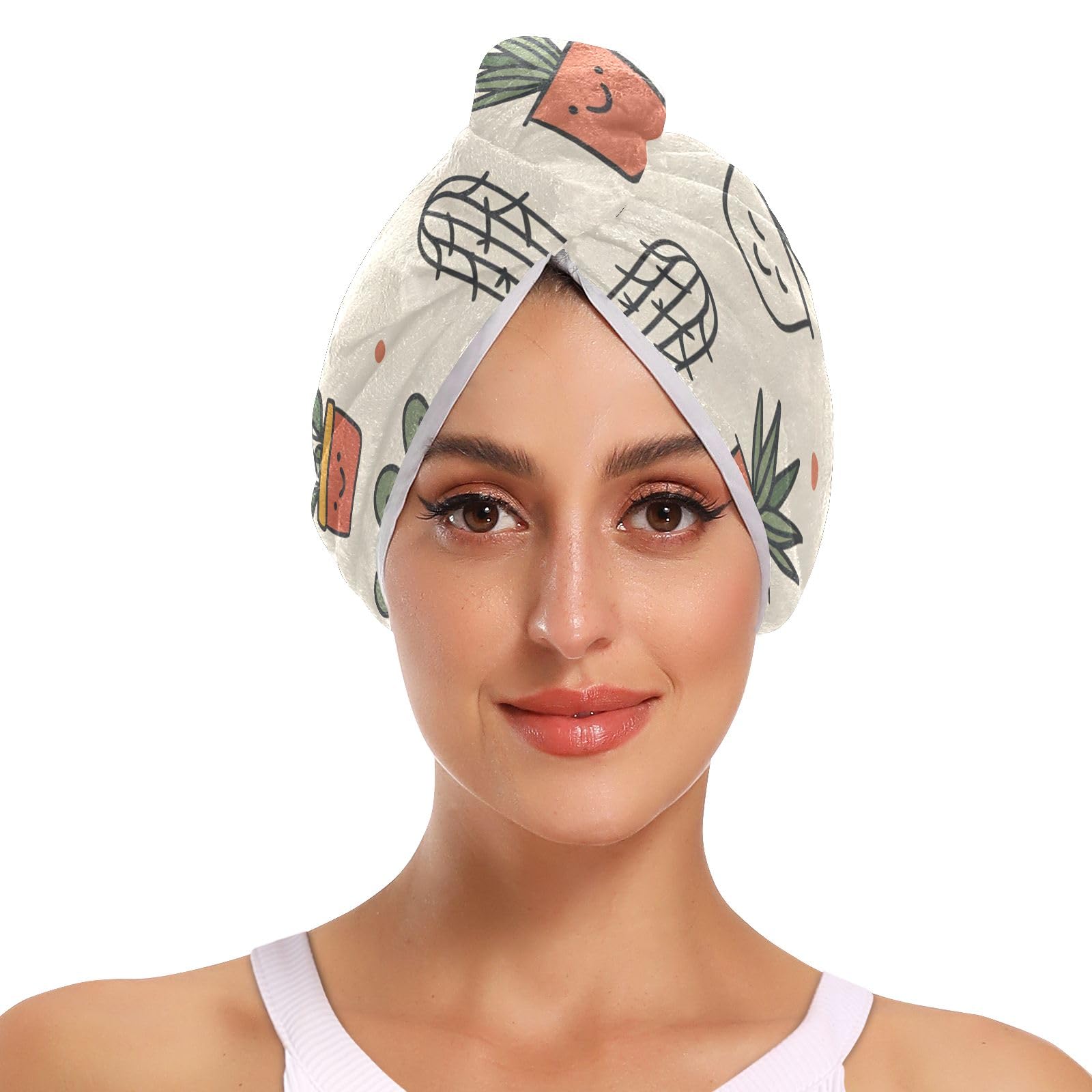 Potted Plants Hair Towel 2 Pack Super Absorbent Hair Drying Towel Quick Dry Hair Turbans Head Towel with Button Twisty Wrap for Women Girls