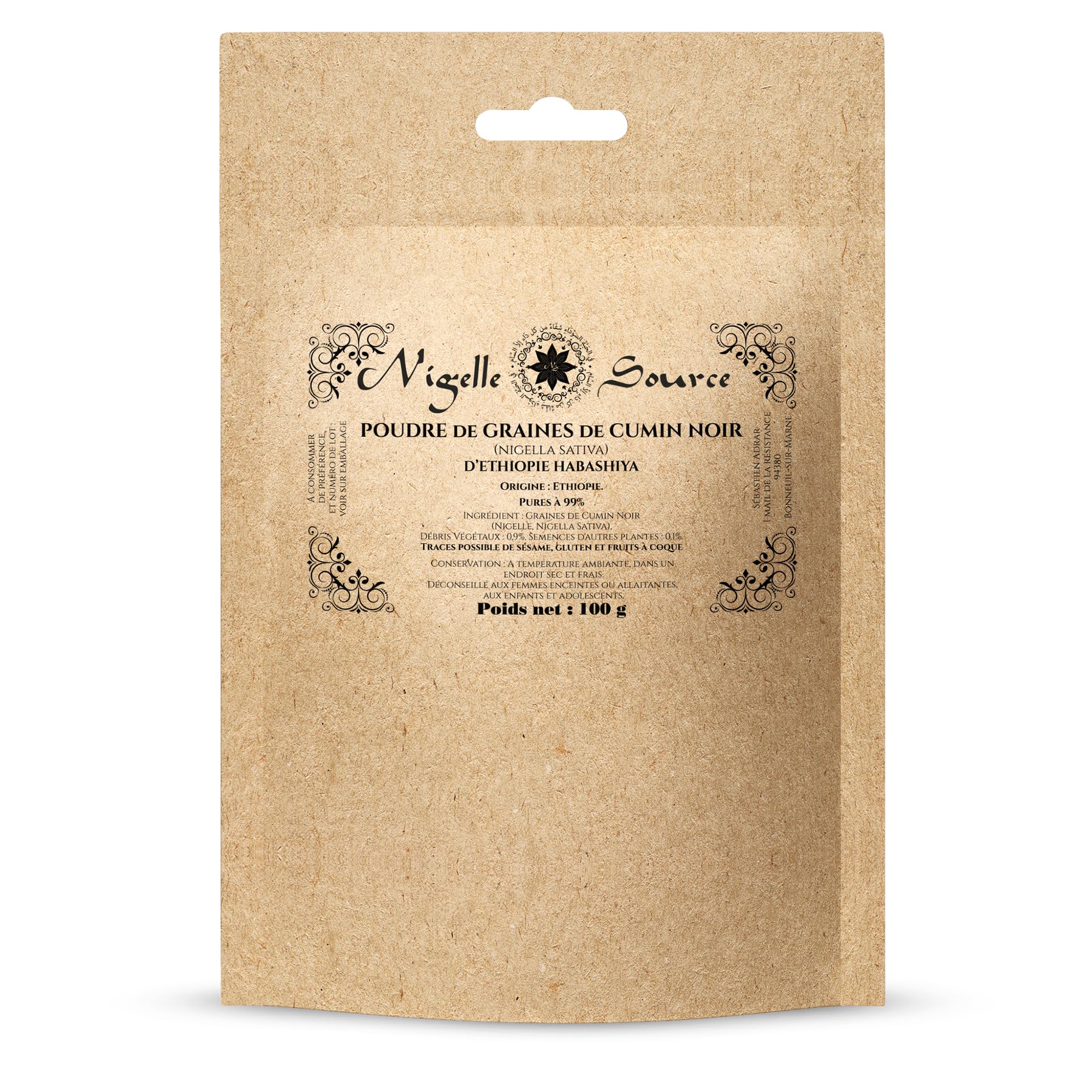 : Discover our 100g Habachyia Nigella Seed Powder, a precious product sourced from the finest producers in Ethiopia, renowned for its subtle benefits to overall well-being. Nigella, also known as black cumin, has been used for centuries in traditional practices, where it is valued for its gentle and natural ability to support daily balance. This natural, powdered product is ideal for those looking to incorporate a wellness aid into their routine. Whether to enhance moments of calm or bring a touch of serenity, this Nigella powder is an excellent addition to enrich your daily life. Ingredients: Black cumin powderBenefits of ground powder: The fine grinding of the seeds allows for better nutrient absorption, facilitating assimilation and ensuring optimal effectiveness in your wellness routine. ? Richness of Ethiopian soil: Harvested in regions where Nigella has been cultivated for centuries, this powder preserves all the power of its seeds, renowned for their exceptional quality and traditional benefits. A 100 natural product: Free from additives and preservatives, offering you a pure and authentic powder. Supports your daily well-being: Used in traditional practices to promote balance, vitality, and natural well-being. Premium quality Ethiopian origin: Nigella Habachyia seed powder sourced from the best producers in Ethiopia, a guarantee of purity and authenticity.Description du produit Découvrez notre poudre de graines de Nigelle Habachyia 100g, un produit précieux provenant des meilleurs producteurs d'Éthiopie, reconnu pour ses bienfaits subtils sur le bien-être général. La Nigelle, également connue sous le nom de cumin noir, est utilisée depuis des siècles dans des pratiques traditionnelles, où elle est appréciée pour son pouvoir doux et naturel à soutenir l'équilibre quotidien. Ce produit naturel, en poudre, est idéal pour ceux qui cherchent à intégrer dans leur routine un allié pour favoriser leur bien-être. Que ce soit pour accompagner vos moments de calme ou apporter une touche de sérénité, cette poudre de Nigelle est un excellent complément pour enrichir votre quotidien. Ingrédients cumin noir en poudreAvantages de la poudre moulue : La mouture fine des graines permet une meilleure absorption des nutriments, facilitant leur assimilation et garantissant une efficacité optimale dans votre routine bien-être. ? Richesse des terres éthiopiennes : Récoltée dans les régions où la Nigelle est cultivée depuis des siècles, cette poudre préserve toute la puissance de ses graines, reconnues pour leur qualité exceptionnelle et leurs bienfaits traditionnels. Un produit 100 naturel : Sans additifs ni conservateurs, pour vous offrir une poudre pure et authentique. Soutient votre bien-être quotidien : Utilisée dans des pratiques traditionnelles pour favoriser l'équilibre, la vitalité et un bien-être naturel. Origine Éthiopienne de qualité premium : Poudre de graines de Nigelle Habachyia provenant des meilleurs producteurs d'Éthiopie, un gage de pureté et d'authenticité.Poudre de Graines de Nigelle Habachyia 100g – Cumin Noir d'Éthiopie, Bien-être Traditionnel– Sélection Premium