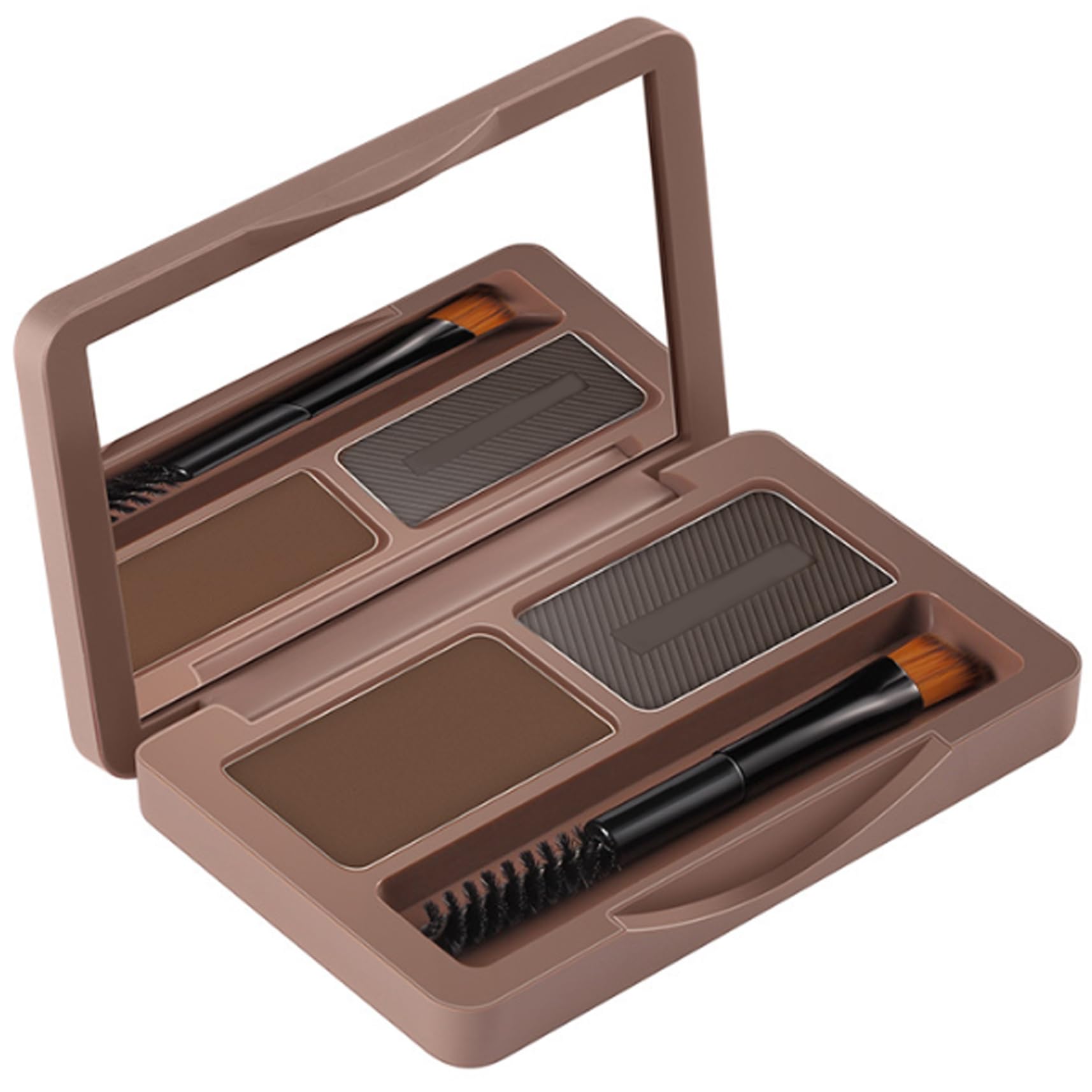 Poudre à sourcils naturelle imperméable, 2 couleurs, Kit de sculpture Duo pour filles et femmes, brun foncé et gris, 1 ensemble