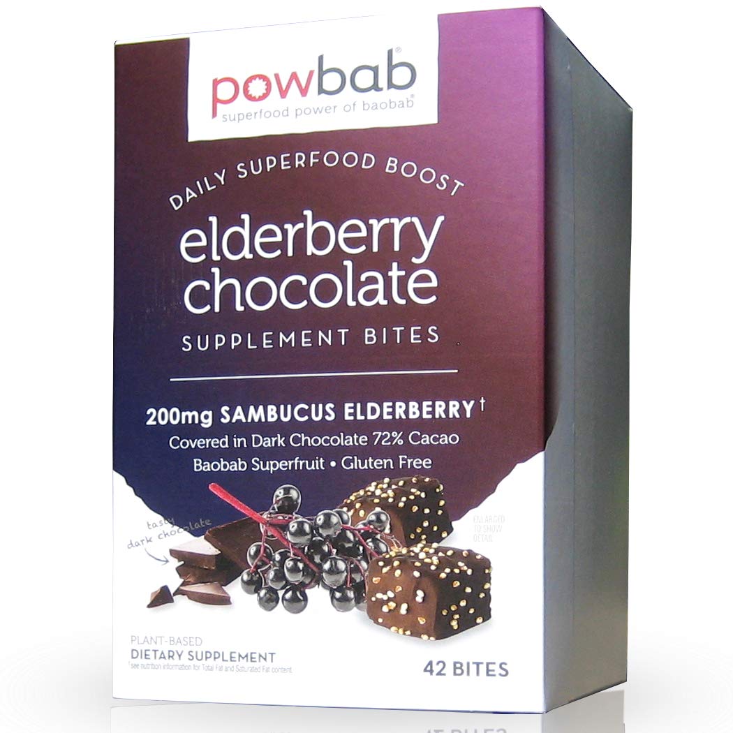 powbab Elderberry Chocolate Bites with Organic Sambucus Elderberry. 33% Less Sugar Than Elderberry Gummies. Organic Dark Chocolate 72% Cacao. Baobab Acerola Cherry (42 Count)