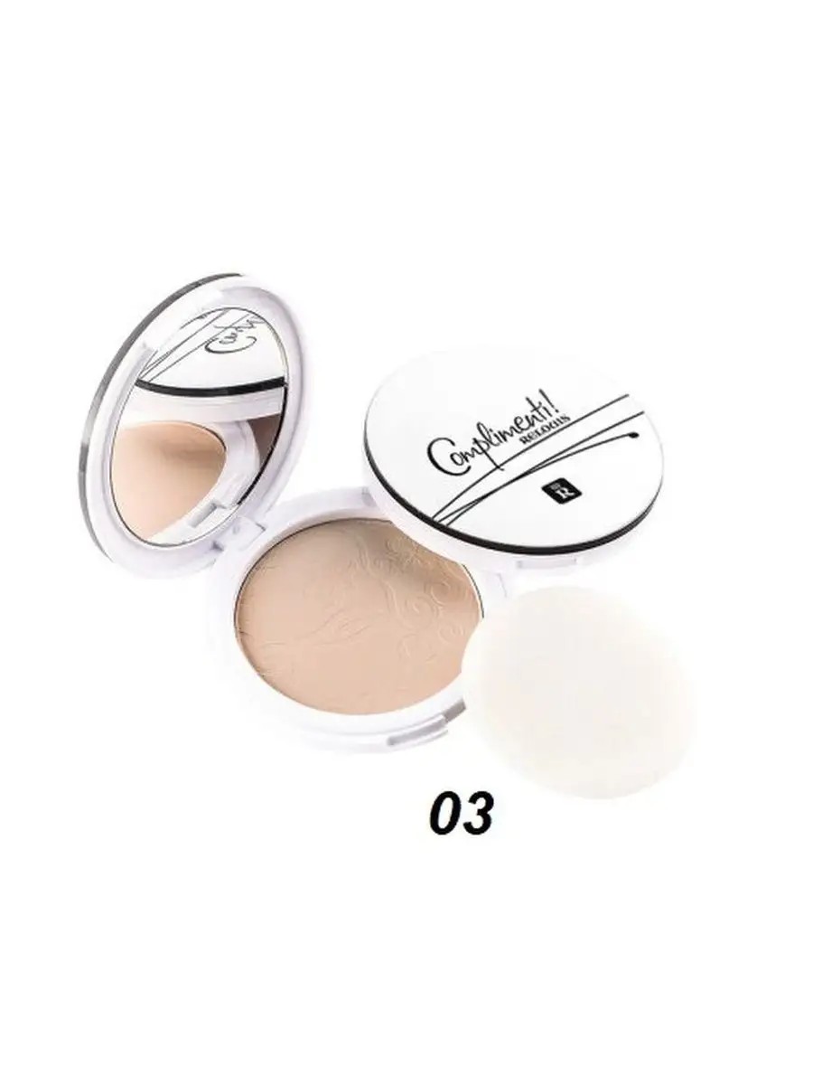 RELOUIS Пудра компактная матирующая "Complimenti! Relouis" тон 03 светлая охра/Едва осязаемая на коже, шелковистая матирующая пудра Complimenti! Relouis выравнивает тон лица, делает кожу бархатистой и нежной. Благодаря входящим в состав абсорбентам пудра убирает жирный блеск с Т-зоны и предотвращает его появление. Сложные эфиры направленного действия в составе продукта придают пудре дополнительную мягкость и шелковистость.Способ примененияНанесите пудру на чистую кожу лица или поверх макияжа с помощью кисти или спонжа.