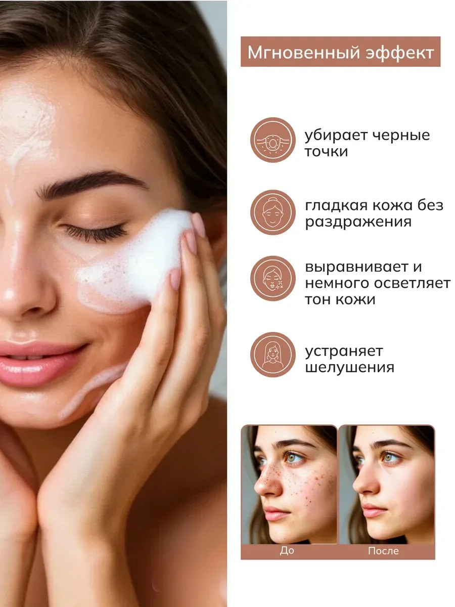 Представляем вам уникальную энзимную пудру Nuit de Lune для умывания, которая станет незаменимым помощником в ежедневном уходе за кожей лица. Этот продукт сочетает в себе мягкость очищающего средства и эффективность активного ухода благодаря содержанию ферментов папайи. Пудра идеально подходит для борьбы с прыщами, черными точками и следами постакне, а также способствует сужению пор. Преимущества: Эффективность против прыщей: активные компоненты глубоко проникают в поры, устраняя загрязнения и предотвращая появление новых воспалений. Очищение от черных точек: регулярное использование энзимной пудры помогает избавиться от комедонов, делая кожу чистой и гладкой. -Уход после акне: средство мягко воздействует на следы постакне, выравнивает тон кожи и улучшает её текстуру. -Сужение пор: благодаря своим активным компонентам, пудра способствует уменьшению видимости расширенных пор, придавая коже более ухоженный вид. Универсальность: подходит для всех типов кожи, включая чувствительную, обеспечивая бережный, но эффективный уход. Просто добавьте немного воды к порошку, чтобы получить нежную пену. Нанесите на влажную кожу массирующими движениями, затем смойте водой. Используйте ежедневно утром и вечером для достижения наилучших результатов.