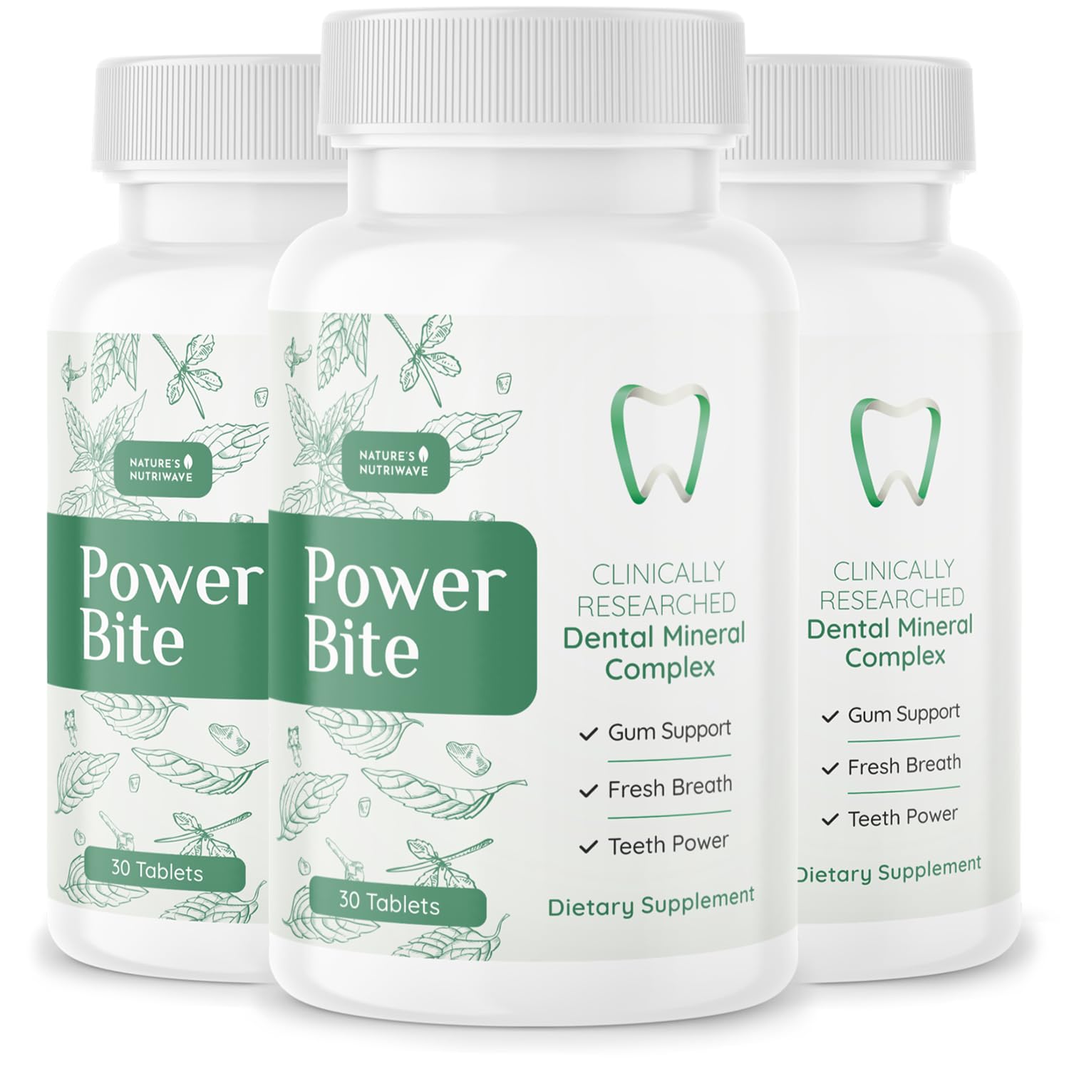 PowerBite is a chewable supplement made with a blend of minerals, plant extracts, and natural sweeteners to support your routine. Designed to be used before bedtime, PowerBite fits easily into your nightly wind-down with a smooth, minty taste and no water required. Each tablet delivers a combination of calcium carbonate, tricalcium phosphate, Mediterranean sea salt, and xylitol, along with botanical ingredients like myrrh gum, clove bud oil, and wild mint. The formula also includes lysozyme, an enzyme naturally found in the body PowerBite is easy to use—just chew or let it dissolve in your mouth before sleep. There's no need to rinse or brush after, making it perfect for travel or anyone looking to simplify their evening routine. It's a great companion to brushing, offering a plant-powered way to end your day with a clean, fresh feel. Manufactured in a GMP-certified facility in the USA, PowerBite is non-GMO, free from stimulants, and non-habit forming. Whether you're looking to maintain fresh breath or just want a convenient chewable option, PowerBite offers a clean and simple solutionMADE IN USA - Non-GMO, non-habit forming, and stimulant-free. Made in the USA in a GMP-certified facility for quality you can trust. EASY TO TAKE- Convenient tablet can be chewed or allowed to melt before bedtime—perfect for travel or nightly routines. NATURAL FORMULA - Features lysozyme—an enzyme found naturally in the body—to help maintain a healthy body environment. WITH HERBAL MINERAL BLEND - Includes wild mint, myrrh gum powder, and clove bud oil combined with minerals to support your care routine. DAILY SUPPORT CHEW - Formulated with calcium carbonate, Mediterranean sea salt, and xylitol in a chewable tablet for easy everyday use.