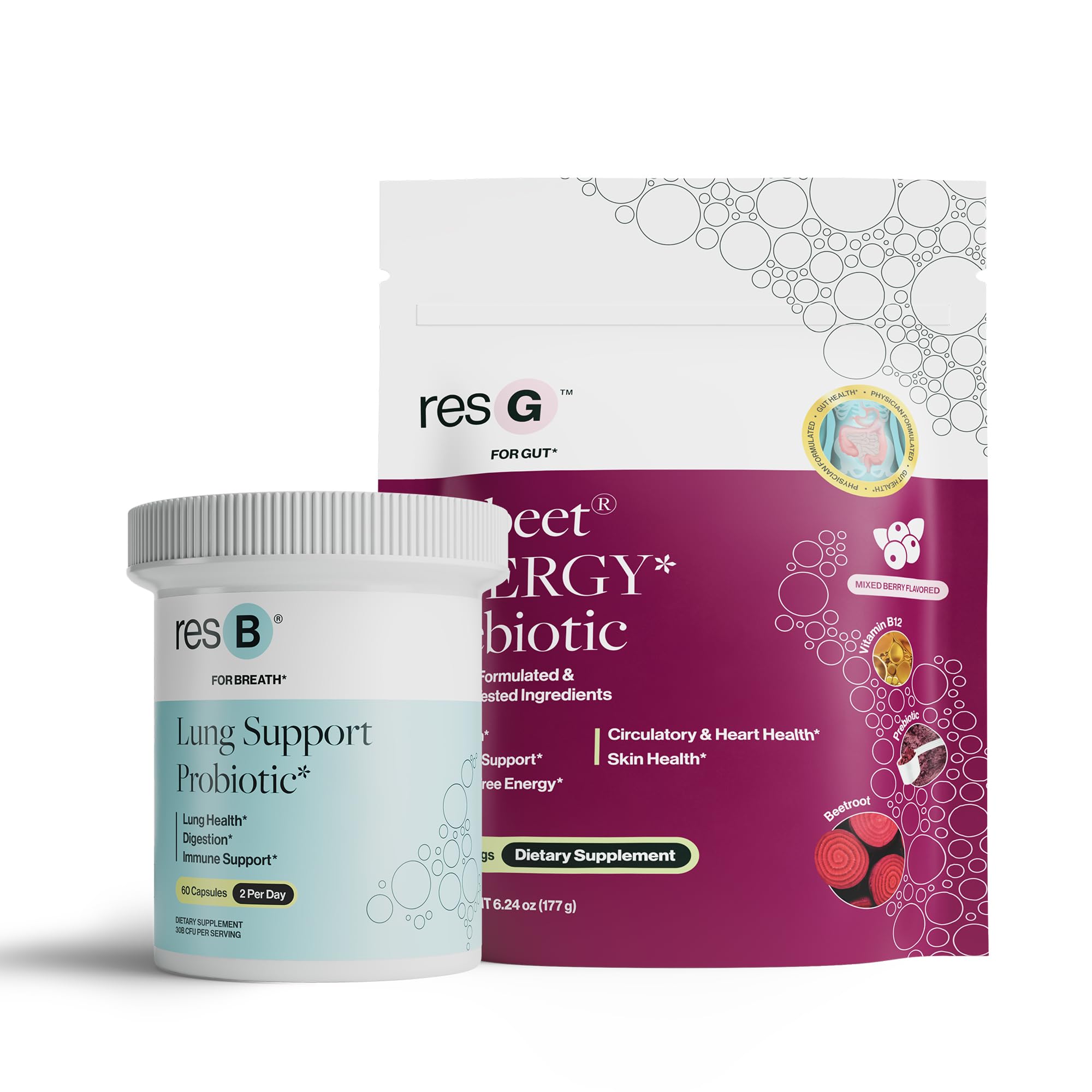 Power Gut Bundle - Lung Probiotic & GLP-1 Prebiotic Clinically Trialed Respiratory Health Support & Metabolism Boost Supplement Vitamins - resB (30 Servings) & prebeet (30 Servings) 30 Count (Pack of 2)