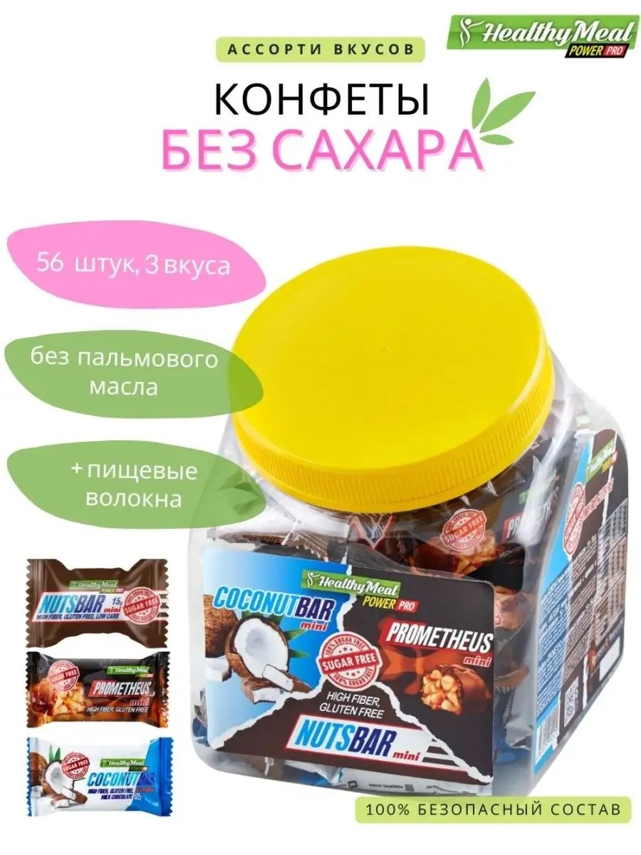 В ассорти популярных протеиновых батончиков без сахара в мини версии входят батончики без сахара с кокосовой стружкой в молочном шоколаде, конфеты без сахара с нугой, арахисом и карамелью (замена сникерсу), а также конфеты, представляющие собой мягкий арахисовый грильяж с карамелью в молочном шоколаде. Конфеты без сахара и без глютена станут безвредной заменой обычным шоколадным конфетам. Все пп конфеты, входящие в состав ассорти, богаты пищевыми волокнами, которые являются натуральным пребиотиком. Пребиотики поддерживают здоровье микрофлоры и улучшают пищеварение. Большое количество пищевых волокон способствуют выведению шлаков и токсинов из организма, что непременно способствует улучшению самочувствия. Полезные сладости от POWER PRO позволят Вам есть вкусные шоколадные конфеты без вреда для здоровья и с меньшим ущербом для фигуры.