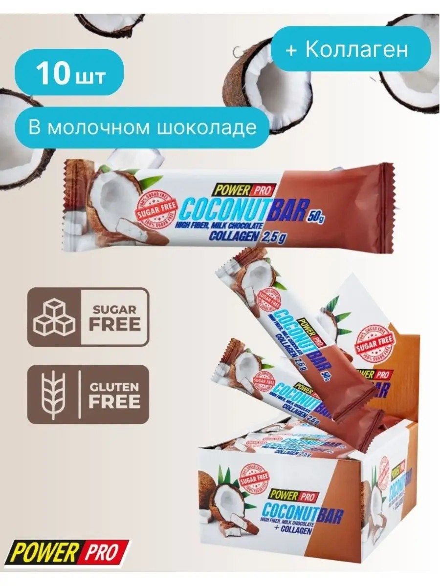 POWER PRO Coconut bars without sugar in milk chocolate 10 pcs