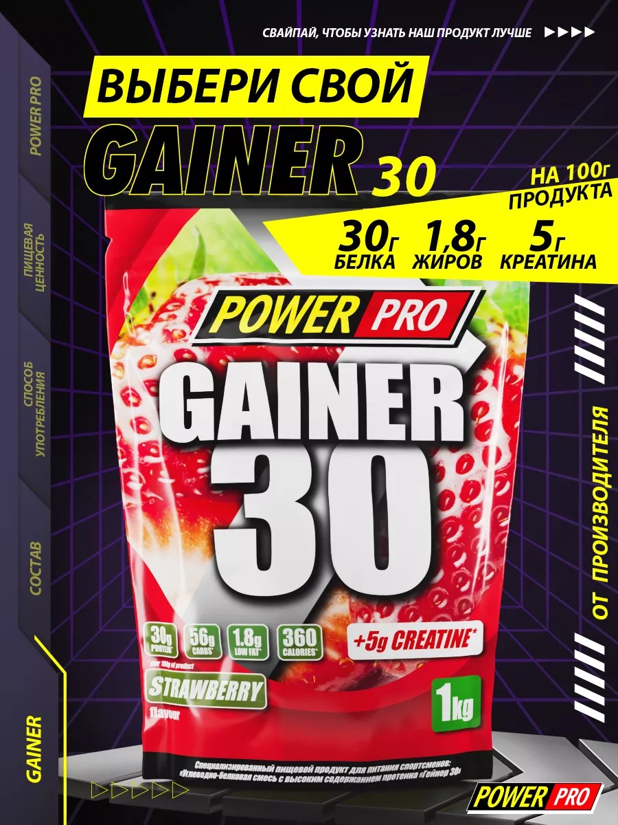 Высокобелковый гейнер с содержанием креатина для быстрого набора мышечной массы - это спортивное питание с высокой калорийностью, которое является отличным помощником при наборе веса, особенно для тех, кто занимается спортом. Гейнер содержит мальтодекстрин, фруктозу и амилопектин. Они способствуют увеличению объема, дают большое количество энергии, легко усваиваются. Эффективность нашего многокомпонентного белково-углеводного гейнера высока благодаря высокому содержанию протеина. Для эффективного увеличения объема в состав Gainer 30 добавлен креатин и аминокислоты. Креатин дает увеличение выносливости, рост объема мышц, положительное влияние на синтез протеина, уменьшение боли в мышцах и восстановление после тренировок. Также данный продукт имеет пониженное содержание жиров, что ускоряет достижение цели по формированию сухой мышечной массы. Протеиновое питание идеально подходит как для мужчин, так и для женщин, желающих набрать мышечную массу. Спортпит включает в себя уникальные добавки, которые способствуют улучшению общего состояния здоровья. Коктейль на основе сывороточного протеина способствует быстрому восстановлению после интенсивных тренировок.