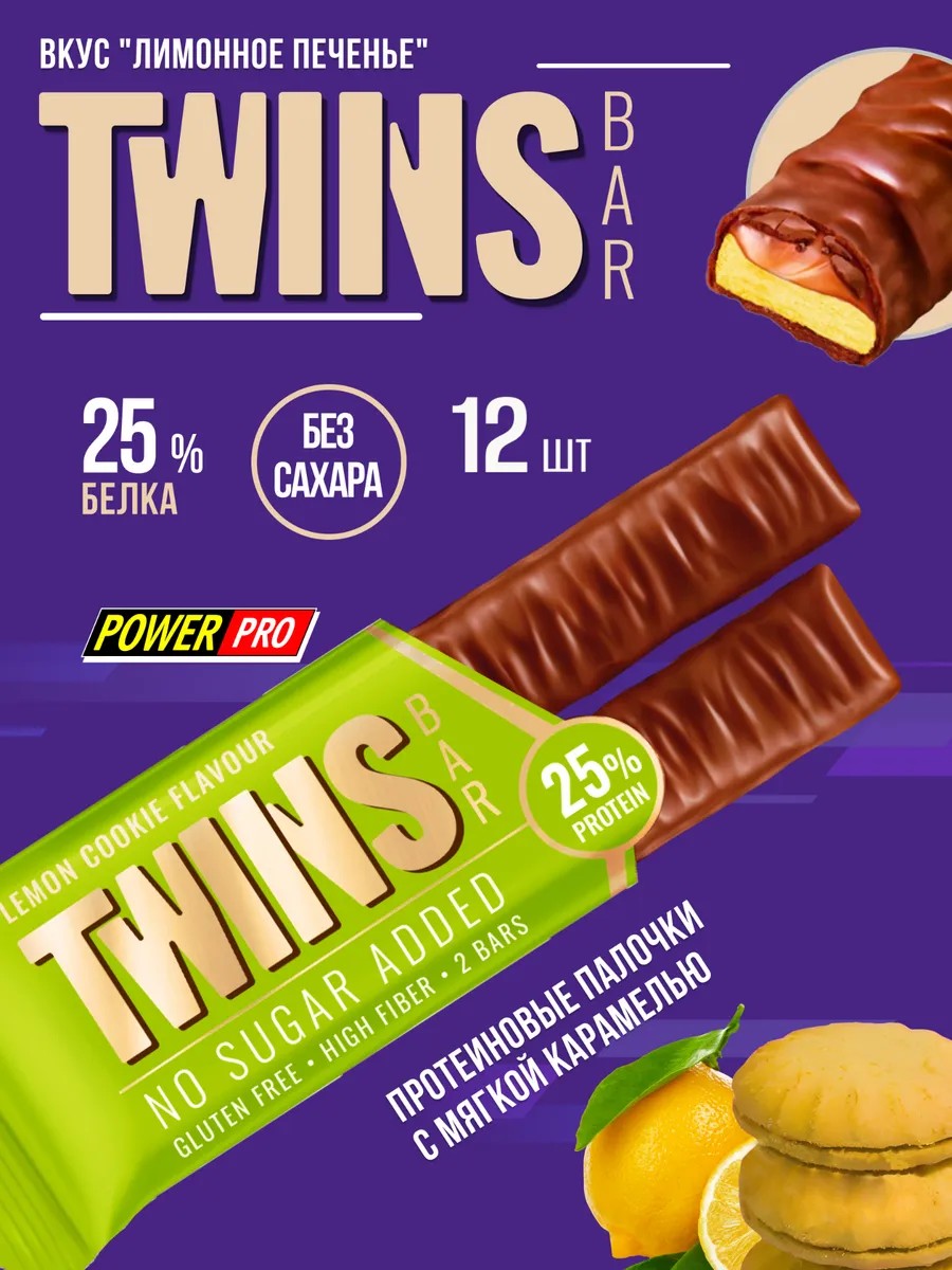 Протеиновые батончики TWINS BAR лимонное печенье, 12 шт