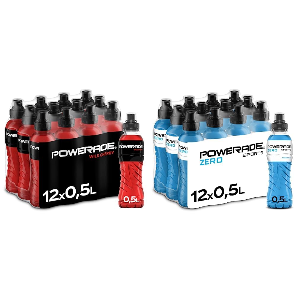 Powerade Sports Wild Cherry, low-calorie sport drink with cherry taste, with electrolytes, sports drink in stylish disposable bottles (12 x 500 ml) Powerade Sports Wild Cherry - 12 x 500ml The intake of liquid is essential for the safe and effective functioning of the body.She plays a central role in our Body functions, regulates body temperature enables muscle contractions.For a high level of performance in sports, it is extremely important that the body's fluid balance is in balance.However, this is made more difficult by the fact that the body is fluent when sweating losing.The solutionPowerade Sports Wild Cherry: With the drink, stolen energy can be refueled again - thanks to that Practical mouthpiece even while running!In this isotonic drink, the ratio of nutrients and liquid corresponds to that of the Human blood and enables rapid recycling through minerals (electrolytes).In addition, the low -calorie drink contains vitamin B6, Which contributes to reducing fatigue - isotonic, refreshing, with electrolytes and vitalizing in sports - for maximum power!Powerade Powerade supports athletes in the correct hydrogenation at large sports events, in clubs, on training tracks and in fitness centers on the All world and convinced by partnerships with athletes, teams and sports associations such as the German Football Association. Powerade Sports Mountain Blast Zero, sugar-free sport drink with fruit mix taste, sport drink in stylish disposable bottles (12 x 500 ml) Powerade Zero is a refreshing sports drink that was specially developed for active people.It has zero calories and at the same time offers electrolytes that help to maintain hydration before, during and after training.Powerade Zero also delivers B vitamins to support the energy metabolism.Thanks to the rapidly absorbing liquid and the practical, re -lockable bottle, the drink is an ideal choice for athletes and fitness enthusiasts who are looking for a low -calorie alternative to sugar -containing drinks.Powerade Zero supports physical performance and helps to remain energetic and focused.Product 2: Practical, recoverable bottle.Product 2: Ideal for consumption before, during and after training.Product 2: Contains zero calories.Product 2: Refreshing sports drink with B vitamins for energy supply.Product 1: Topfit: The drink is enthusiastic about the coordinated combination of carbohydrates electrolytes, is low in calories and contains vitamin B6, which contributes to reducing fatigue.Product 1: Intensive enjoyment: The light red fitness drink with the taste of fruity cherries ensures refreshing pleasure and new strength.Product 1: More power than expected: The isotonic sports drinks with electrolytes help to optimize the fluid intake during sports and to increase the training sustainably.Product 1: Maximum Power: The soft drink deletes the thirst before, during or after sports - simply open the closure and experience pure enjoyment.Powerade Sports Wild Cherry, kalorienarmes Sport Getränk mit Kirsch-Geschmack, mit Elektrolyten, Sport Drink in stylischen Einweg Flaschen (12 x 500 ml) Powerade Sports Wild Cherry - 12 x 500ml Die Aufnahme von Flüssigkeit ist für das sichere und effektive Funktionieren des Körpers ist essenziell. Sie spielt eine zentrale Rolle bei unseren Körperfunktionen, reguliert die Körpertemperatur ermöglicht Muskelkontraktionen. Für ein hohes Leistungsniveau beim Sport ist es extrem wich- tig, dass der Flüssigkeitshaushalt des Körpers im Gleichgewicht ist. Erschwert wird dies jedoch dadurch, dass der Körper beim Schwitzen viel Flüssig- keit verliert. Die LösungPowerade Sports Wild Cherry: Mit dem Getränk kann durch Sport geraubte Energie wieder aufgetankt werden - dank dem praktischen Mundstück sogar während des Laufens! In diesem isotonischen Getränk entspricht das Verhältnis von Nährstoffen zu Flüssigkeit dem des menschlichen Blutes und ermöglicht durch Mineralstoffe (Elektrolyte) eine schnelle Verwertung. Zudem enthält das kalorienarme Getränk Vitamin B6, welches zur Verringerung von Müdigkeit beiträgt - Isotonisch, erfrischend, mit Elektrolyten und vitalisierend beim Sport - für maximale Power! Powerade Powerade unterstützt Sportler bei der richtigen Hydrierung auf großen Sport-Events, in Vereinen, auf Trainingsbahnen und in Fitnesscentern auf der ganzen Welt und überzeugt durch Partnerschaften mit Sportlern, Mannschaften und Sportverbänden wie beispielsweise dem deutschen Fußball-Bund. Powerade Sports Mountain Blast Zero, zuckerfreies Sport Getränk mit Fruchtmix-Geschmack, Sport Drink in stylischen Einweg Flaschen (12 x 500 ml) Powerade Zero ist ein erfrischendes Sportgetränk, das speziell für aktive Menschen entwickelt wurde. Es verfügt über null Kalorien und bietet gleichzeitig Elektrolyte, die helfen, die Hydratation vor, während und nach dem Training aufrechtzuerhalten. Powerade Zero liefert auch B-Vitamine, um den Energiestoffwechsel zu unterstützen. Dank der schnell absorbierenden Flüssigkeit und der praktischen, wiederverschließbaren Flasche ist das Getränk eine ideale Wahl für Sportler und Fitnessbegeisterte, die auf der Suche nach einer kalorienarmen Alternative zu zuckerhaltigen Getränken sind. Powerade Zero unterstützt körperliche Leistungsfähigkeit und hilft dabei, energiegeladen und fokussiert zu bleiben.Produkt 2: Praktische, wiederverschließbare Flasche. Produkt 2: Ideal für den Verzehr vor, während und nach dem Training. Produkt 2: Enthält Null Kalorien. Produkt 2: Erfrischendes Sportgetränk mit B-Vitamine für Energieversorgung. Produkt 1: Topfit: Das Getränk begeistert mit der abgestimmten Kombination aus Kohlenhydraten Elektrolyten, ist kalorienarm und enthält Vitamin B6, was zur Verringerung von Müdigkeit beiträgt. Produkt 1: Intensiver Genuss: Das hellrote Fitness Getränk sorgt mit dem Geschmack von fruchtigen Kirschen für erfrischenden Genuss und neue Kraft. Produkt 1: Mehr Power als gedacht: Die isotonischen Sportgetränke mit Ele