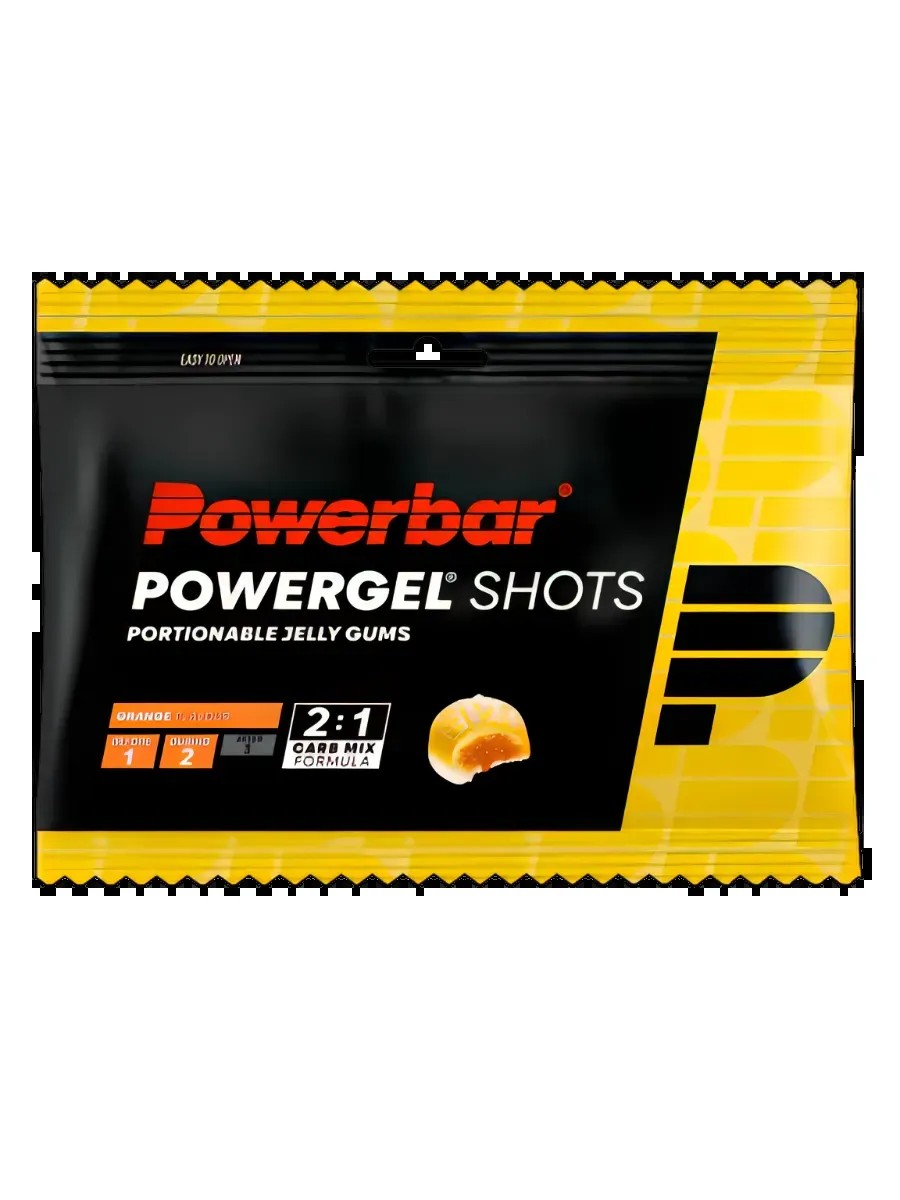 24 упаковки по 60 г батончиков PowerBar PowerGel Shots, общий вес 1440 г.