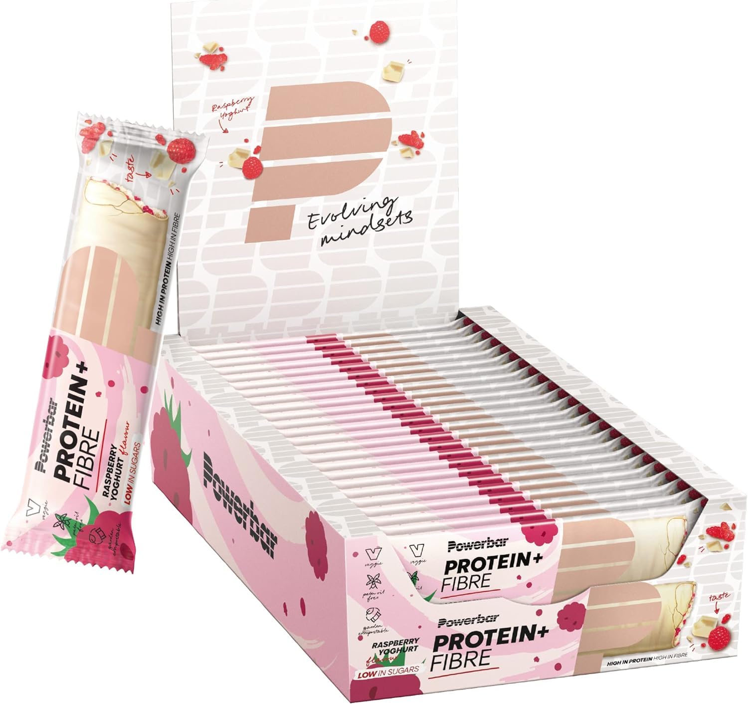 Eating well is important for health and sports performance. Protein helps maintain and increase muscle mass. Furthermore, a sufficient quantity of fiber is an important element in a varied and balanced diet. The new PowerBar protein plus fiber bar not only gives you 11g of high-quality protein, but also 7g of fiber. With only 1.2g of sugar per bar and a delicious taste, this bar is an ideal little protein snack between meals or after sport. INGREDIENTS White chocolate with sweetener (18 ) [sweetener (maltitol), cocoa butter, whole MILK powder, emulsifier (lecithins)], calcium caseinate (MILK), oligofructose syrup, humectant (glycerol), soluble dietary fiber (resistant maltodextrin), whey protein isolate (MILK), MILK protein, hydrolyzed whey protein (MILK), inulin, freeze-dried raspberries (2 ), rapeseed oil, natural flavors, emulsifier (lecithins (SOYA)). May contain: PEANUTS, ALMONDS, HAZELNUTS, GLUTEN. DIRECTIONS FOR USE Recommended consumption per day: 1 serving. SAFETY WARNING 1 bar per day.As part of a varied, balanced diet and a healthy lifestyle.Excessive consumption can have laxative effects. DISCLAIMER Food supplements do not replace a balanced and varied diet. WE RECOMMEND, as part of a varied and balanced diet and a healthy lifestyle, 1 PowerBar protein bar per day, drinking enough as needed. THE DELICIOUS TASTE of our protein bar with fiber is the ideal reward between meals or after exercise. ENJOY WITH PEACE OF MIND thanks to the low sugar content: max. only 1.2 g per protein bar. GOOD INTESTINAL TRANSIT thanks to the addition of fiber: 28 of the recommended daily intake per bar (25 g day according to the European Food Safety Authority). SUPPORTS MUSCLE BUILDING AND REGENERATION thanks to the high protein content: 11 g per 35 g bar. Bien s'alimenter est important pour la santé et les performances sportives. Les protéines contribuent au maintien et à l'augmentation de la masse musculaire. Par ailleurs, une quantité suffisante de fibres est un élément important dans une alimentation variée et équilibrée. La nouvelle barre protéine plus fibre de PowerBar vous apporte non seulement 11 g de protéines de haute qualité, mais également 7 g de fibres. Avec seulement 1, 2 g de sucre par barre et un goût délicieux, cette barre est un petit en-cas protéiné idéal entre les repas ou après le sport. INGRÉDIENTS Chocolat blanc avec édulcorant (18 ) [édulcorant (maltitol), beurre de cacao, LAIT entier en poudre, émulsifiant (lécithines)], caséinate de calcium (LAIT), sirop d'oligofructose, humectant (glycérol), fibres alimentaire solubles (maltodextrine résistante), isolat de protéines de lactosérum (LAIT), protéines de LAIT, protéines de lactosérum hydrolysées (LAIT), inuline, framboises lyophilisées (2 ), huile de colza, arômes naturels, émulsifiant (lécithines (SOJA)).Peut contenir: ARACHIDES, AMANDES, NOISETTES, GLUTEN. MODE D'EMPLOI Consommation recommandée par jour : 1 portions. AVERTISSEMENT DE SÛRETÉ 1 barre par jour.Dans le cadre d'une alimentation variée, équilibrée et d'un mode de vie sain.Une consommation excessive peut avoir des effets laxatifs. CLAUSE DE NON-GARANTIE Les compléments alimentaires ne remplacent pas une alimentation équilibrée et variée. NOUS RECOMMANDONS, dans le cadre d'une alimentation variée et équilibrée et d'un mode de vie sain, selon les besoins, 1 barre protéinée PowerBar par jour en buvant suffisamment. LE GOÛT DÉLICIEUX de notre barre protéinée avec des fibres est la récompense idéale entre les repas ou après le sport. SAVOURER EN TOUTE SÉRÉNITÉ grâce à la faible teneur en sucre : max. 1,2 g seulement par barre protéinée. BON TRANSIT INTESTINAL grâce à l'ajout de fibres : 28 de la dose journalière recommandée par barre (25 g jour selon l'Autorité européenne de sécurité des aliments). FAVORISE LE DÉVELOPPEMENT MUSCULAIRE ET LA RÉGÉNÉRATION grâce à la teneur élevée en protéines : 11 g par barre de 35 g.