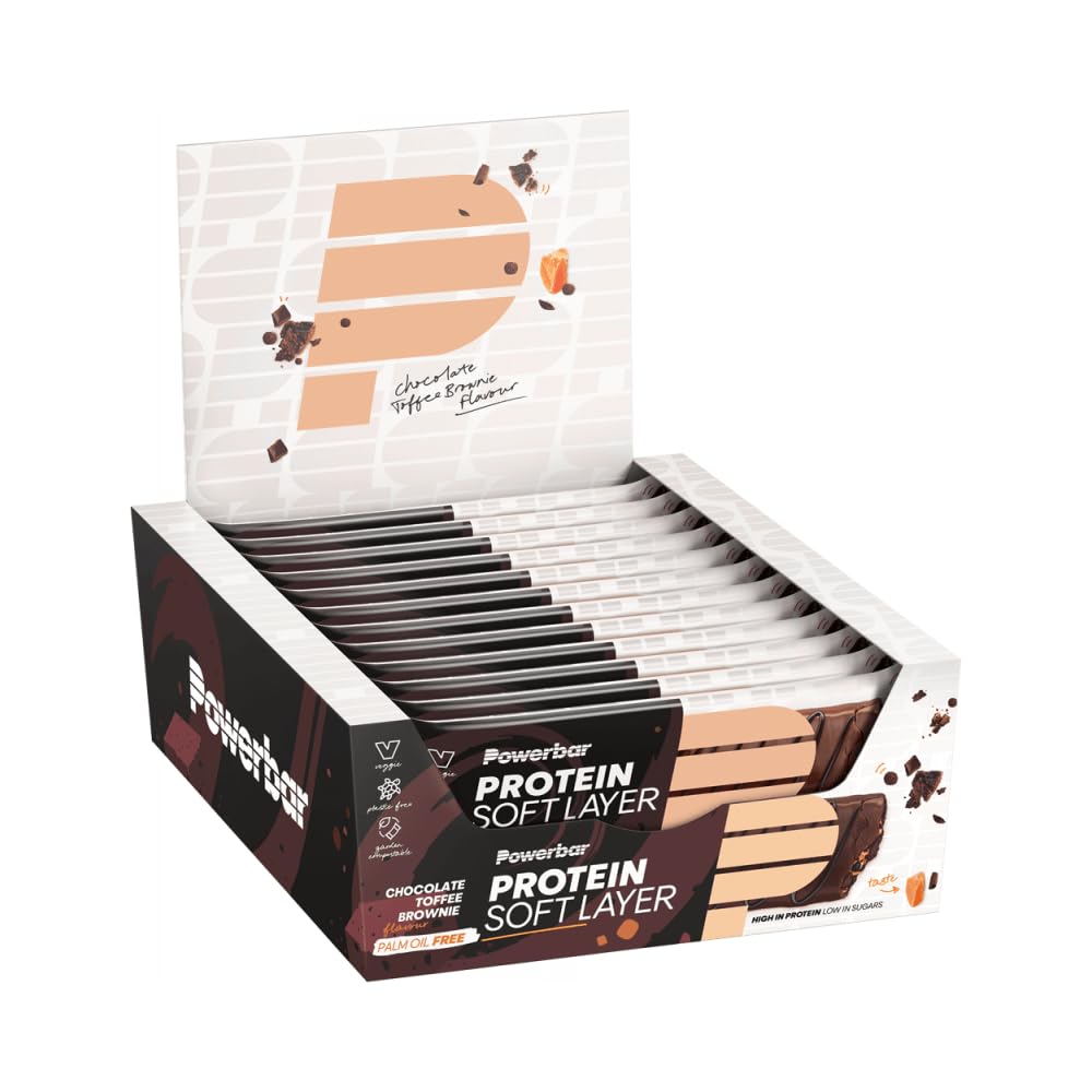 Our Soft Layer Protein Bar provides you with protein in three tasty layers: a creamy, soft protein layer meets a delicate caramel layer and crunchy crispies - enveloped in milk chocolate. In the taste of chocolate caramel brownie, it provides 9.6 g of protein per bar, for 0.7 g of sugar - after sport or for a snack in between. It forgoes palm oil and collagen and is completely plastic-free in a compostable film. INGREDIENTS Filling (polydextrose), milk chocolate with sweetener (20 ) [sweetener (maltitum), cocoa butter, whole milk powder, cocoa mass, butterfat (milk), emulsifier (lecithin (soy)), flavor], milk protein (calcium caseate, whey protein isolate), humidifier. medium (sorbitol, glycerin), SOJAcrispies (5 ) (soy protein, low-fat cocoa powder, starch), sweetener (maltit), low-fat cocoa powder (3.5 ), dark chocolate with sweetener (3 ) [cocoa mass, sweetener (maltitumt), cocoa butter, emulsifier (lecithin (soy)], sunflower oil, soy protein, rapeseed oil, cocoa fat shea butter, flavors, emulsifier [lecithin (soy)], colored plant extracts (apple and hibiscus concentrates), salt May contain: Wheat, barley, oats, peanuts, almonds, hazelnuts, cashews. DIRECTIONS FOR USE Recommended consumption per day: 1 serving. SAFETY WARNING May have a laxative effect if consumed excessively. DISCLAIMER Food supplements do not replace a balanced and varied diet. RICH IN PROTEIN with at least 9.6g of protein per protein bar. The perfect addition to your workout or as a snack for those peckish moments. Package contents: 12 protein bars per box. VEGETARIAN, COLLAGEN-FREE, AND PALM OIL-FREE, this low-sugar protein bar is a testament to Powerbar's quality and sustainability. A GOOD ALTERNATIVE TO A CHOCOLATE BAR with only 0.7-1.7g of sugar per 40g protein bar, in line with the motto: maximum performance without compromise. MAXIMUM TASTE with three delicious layers of creamy protein mass, soft toffee, and crunchy crispies, all covered in chocolate – the perfect reward that puts you in a good mood. Notre barre protéinée Soft Layer vous fournit des protéines en trois couches savoureuses : une couche de protéines crémeuse et douce rencontre une délicate couche de caramel et des crispies croustillantes - enveloppées de chocolat au lait. Dans le goût du brownie au caramel chocolat, il apporte 9,6 g de protéines par barre, pour 0,7 g de sucre - après le sport ou pour une collation entre les deux. Elle renonce à l'huile de palme et au collagène et est entièrement sans plastique dans un film compostable. INGRÉDIENTS Remplissage (polydextrose), chocolat au lait avec édulcorant (20 ) [édulcorant (maltitum), beurre de cacao, lait entier en poudre, pâte de cacao, graisse au beurre (lait), émulsifiant (lécithine (soja)), arôme], protéines de lait (caséate de calcium, isolat de protéines de lactosérum), humidificateur. moyen (sorbitol, glycérine), SOJAcrispies (5 ) (protéines de soja, poudre de cacao faible en gras, amidon), édulcorant (maltit), poudre de cacao faible en gras (3,5 ), chocolat noir avec édulcorant (3 ) [pâte de cacao, édulcorant (maltitumt), beurre de cacao, émulsifiant (lécithine (soja)], tournesol. huile, protéines de soja, huile de colza, graisse de karité, arômes, émulsifiant [lécithine (soja)], extraits végétaux colorés (concentrés de pomme et d'hibiscus), sel. Peut contenir : Blé, orge, avoine, arachides, amandes, noisettes, noix de cajou. MODE D'EMPLOI Consommation recommandée par jour : 1 portions. AVERTISSEMENT DE SÛRETÉ Peut avoir un effet laxatif en cas de consommation excessive. CLAUSE DE NON-GARANTIE Les compléments alimentaires ne remplacent pas une alimentation équilibrée et variée. RICHE EN PROTIÉINES avec au moins 9,6 g de protéine par barre protéinée. Le complément parfait à votre entraînement ou en snack pour les petites faims. Contenu de la livraison : 12 barres protéinées par boîte. VÉGÉTARIENNE, SANS COLLAGÈNE ET SANS HUILE DE PALME, cette barre protéinée pauvre en sucre atteste de la qualité et de la durabilité de Powerbar. UNE BONNE ALTERNATIVE À LA BARRE CHOCOLATÉE avec seulement 0,7-1,7 g de sucre pour 40 grammes de barre protéinée, conforme à la devise performance maximum sans compromis. UN GOÛT MAXIMAL avec trois délicieuses épaisseurs de masse protéinée crémeuse, du toffee doux et des crispies croustillants, le tout recouvert de chocolat – la récompense parfaite qui met de bonne humeur.