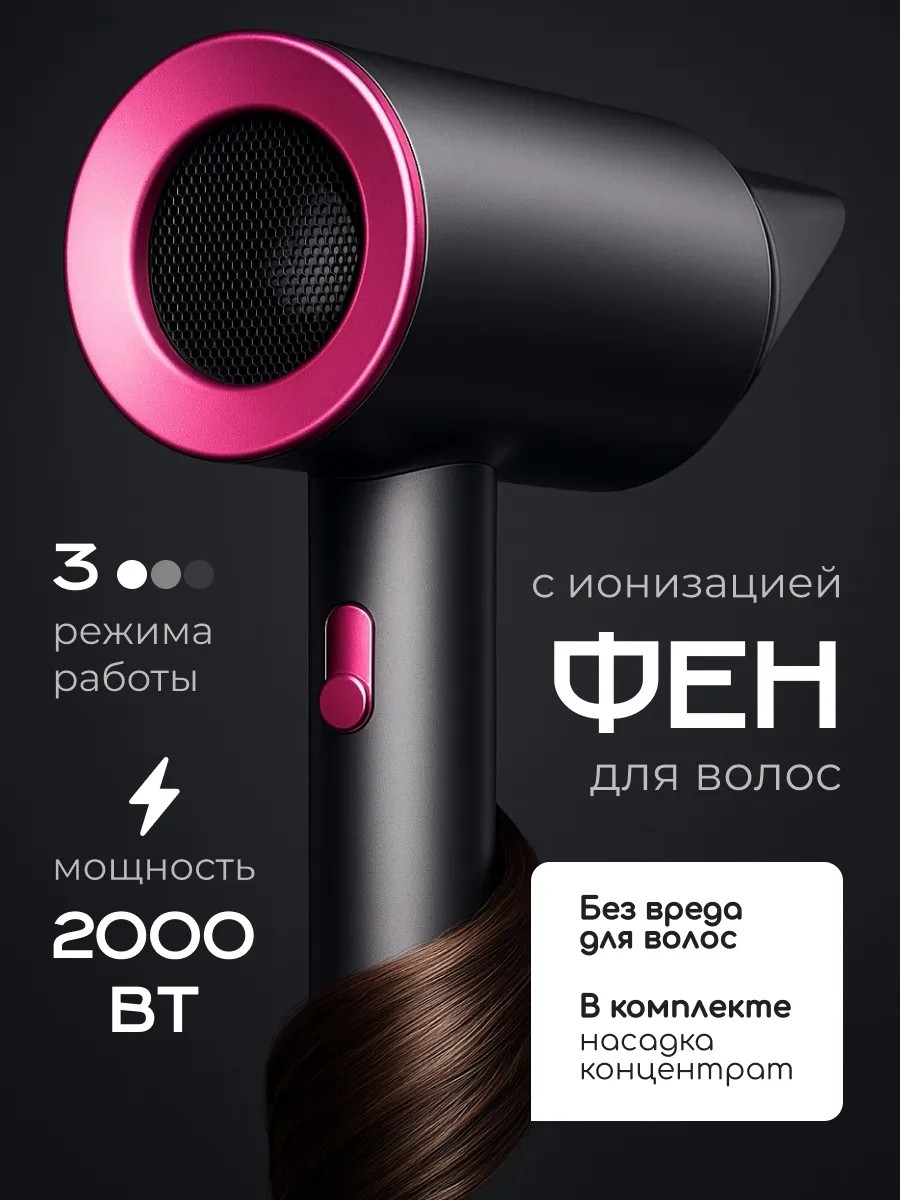 Представляем вашему вниманию замечательный, удобный, практичный фен для волос! Супер мощный фен позволит вам в домашних условиях просушить, уложить свои волосы, как после салона красоты! Профессиональный фен для волос с насадками в комплекте. Мощный фен -это современный и стильный фен для волос с функцией быстрой сушки, он обеспечивает безопасный и здоровый уход за волосами любой длины и густоты. Фен для волос — один из самых распространённых электроприборов, предназначенный для сушки волос. Профессиональный фен для волос Powerful Hair Dryer - это современный и стильный фен для волос с функцией быстрой сушки, он обеспечивает безопасный и здоровый уход за волосами любой длины и густоты. Сильный воздушный поток и нагрев способны справиться даже с самыми непослушными волосами. Фен для укладки очень удобен в использовании. Фен - это профессиональный прибор для сушки и укладки волос. Он оснащен различными насадками, которые позволяют создавать разнообразные укладки и придавать волосам желаемую форму. Этот мощный фен справляется даже с самыми кудрявыми локонами. Благодаря удобному дизайну и компактным размерам, этот фен идеально подходит для использования как в домашних условиях, так и в профессиональной парикмахерской. Он также является отличным спутником для путешествий благодаря своей дорожной версии. Эта бытовая сушилка волос мужской и женский для выпрямления кудрей обеспечивает быстрое и эффективное сушение волос с помощью потока воздухом. Кроме того, она позволяет выпрямлять волосы с помощью холодного воздуха, чтобы закрепить идеальный уклад. Фен подходит как для женщин, так и для мужчин, и он является незаменимым инструментом для создания причесок любого стиля. Этот супер-фен обеспечивает хороший результат и долговечность. Благодаря компактным размерам и весу можно использовать его как фен дорожный в поездки и путешествия.