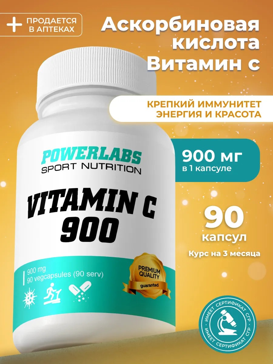 POWERLABS Витамин с, с 900 мг витамин c vitamin c аскорбиновая кислота