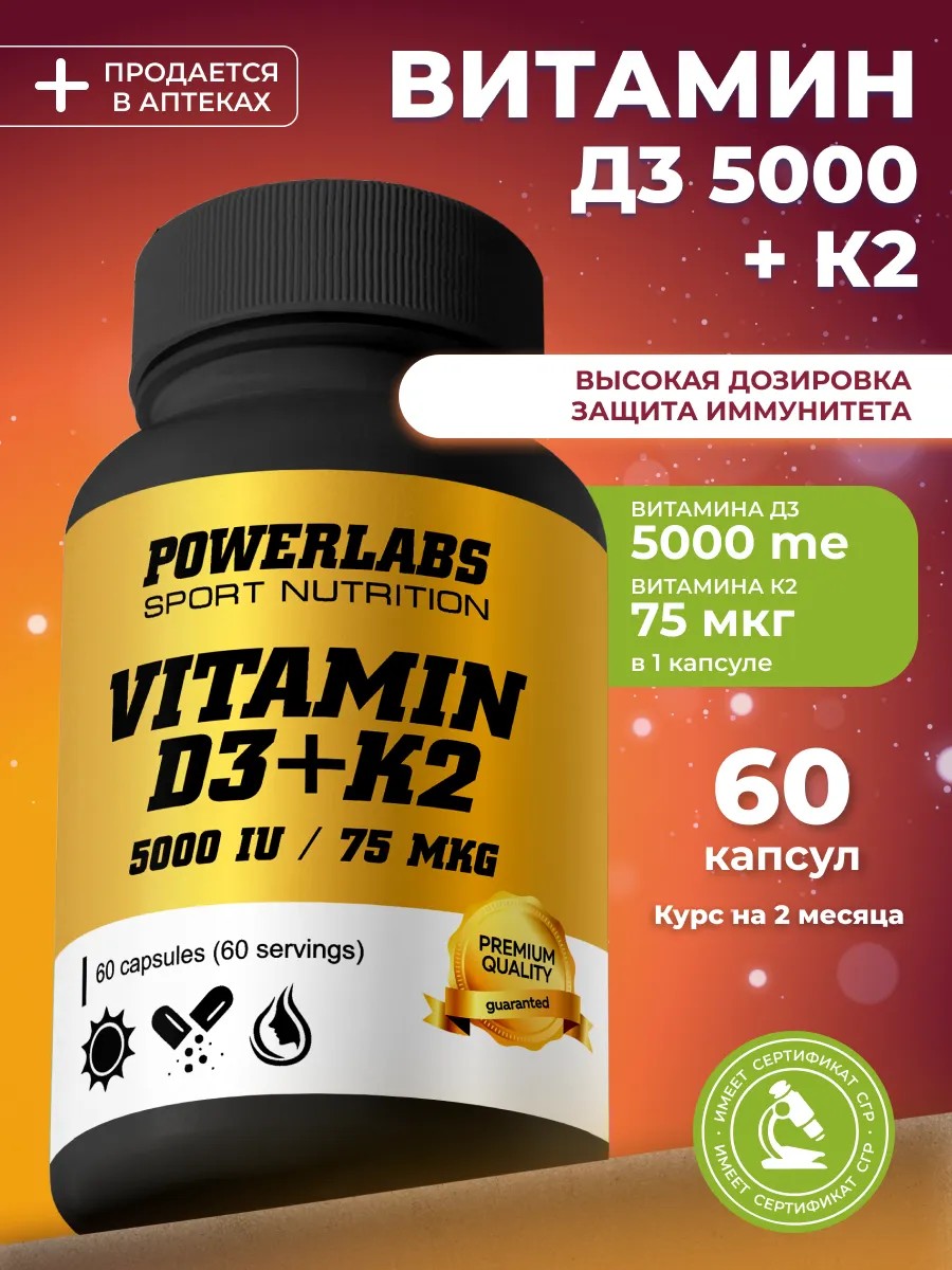 POWERLABS Витамин Д3 5 000 + К2 75 мкг 60 капсул