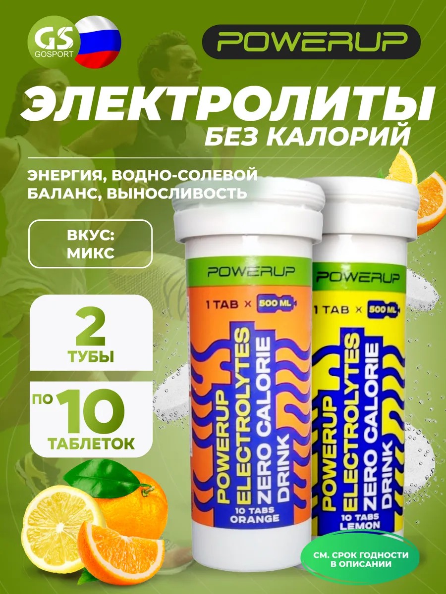 Электролиты в шипучках ELECTROLYTES ZERO CALORIE DRINK 2 x 60 г, Микс. Powerup Electrolytes - это уникальный продукт, без углеводов, богатый электролитами для здоровья спортсменов, атлетов, всех взрослых женщин и мужчин. Он обеспечивает организм энергией, восстанавливает водно-солевой баланс, повышает выносливость во время длительных тренировок и соревнований, укрепляет иммунитет. Натрий - это основной минерал, содержащийся в соли, который очень важен для здоровья организма. В крови натрий участвует в поддержании правильного баланса жидкости и в транспортировке глюкозы. Этот электролит важен для мышечных сокращений, передачи нервных импульсов и для поступления питательных веществ в клетки. Калий - жизненно важный электролит, который работает вместе с натрием. Натриево-калиевые насосы, находящиеся в наших клетках, используют оба эти электролиты для выработки электрической энергии в нервах и мышцах. Калий также участвует в защите почек и укреплении желудка. Магний является кофактором, который активирует более 300 различных ферментов в организме. Этот электролит помогает мышцам и телу расслабиться, успокаивая нервную систему и предотвращая судороги и спазмы в мышцах. Кальций – сильный электролит, который используется для роста, восстановления и укрепления зубов и костей. Хлор – это электролит, отрицательно заряженная молекула, взаимодействующая с другими электролитами, такими как калий и натрий, и тем самым участвующая в регуляции количества жидкости в организме и поддерживающая кислотно-щелочной баланс. Фосфор необходим организму для производства энергии, выполнения функций мышечной и нервной системы, а также для роста костей. Способ приготовления: 1 таблетку (3,8 г) растворить в 500 мл воды (не выше 40 градусов). После приготовления употребить в течение дня. Состав подобран специально для быстрого всасывания в организме. Благодаря этому, электролиты утоляют жажду быстрее и эффективнее обычной воды. Состав на порцию (1 таблетка): натрий 437,43 мг; калий 65,87 мг; магний 8,206 мг; кальций 22,8 мг; фосфор 34,96 мг; хлор 684,20 мг. Содержит мальтодекстрин.
