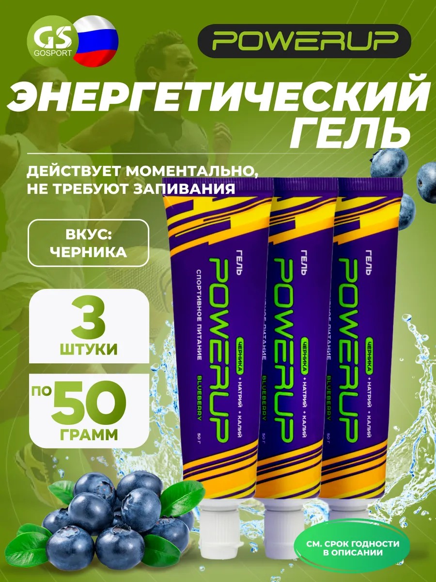 Энергетический гель питьевой Гель 3 x 50 г, Черника. Энергетические гели — это неотъемлемая часть спортивного питания ставшая популярным средством для дополнительного питания организма во время физических нагрузок. PowerUp спортивный энергетический гель - превосходный продукт, который создан исключительно на основе натуральных соков. В его составе нет подсластителей и ароматизаторов, что делает его безопасным и полезным для здоровья. Ключевые компоненты каждого геля PowerUp - это три углевода с различными гликемическими индексами: декстроза, мальтодекстрин и фруктоза. Эти углеводы обеспечивают непрерывный прилив энергии, необходимой для интенсивных тренировок и соревнований. Кроме того, в составе геля присутствуют натрий и калий - соли, которые способствуют поддержанию баланса электролитов и гидратации организма. PowerUp гель не содержит кофеина, что позволяет спортсменам получить необходимый прилив энергии без вредного воздействия на нервную систему. Он представляет собой натуральный и эффективный способ восполнить запасы энергии и восстановиться после интенсивных физических нагрузок. Гель PowerUp также идеально подходит для использования во время бега, тренировок и длительных дистанций, когда организм нуждается в постоянном питании. Благодаря своей уникальной формуле, этот энергетик обеспечивает прилив энергии и поддерживает работоспособность мышц. Не забывайте, что PowerUp углеводный гель рекомендован как для мужчин, так и для женщин, занимающихся различными видами спорта. Уникальная формула геля способствует эффективному восполнению гликогена, противодействует усталости, и благотворно влияет на общее состояние здоровья и выносливость. Этот продукт является отличным подарком для спортсменов всех уровней, которые стремятся достичь новых высот. ГельPowerUp поможет вам преодолеть границы своего потенциала и достичь новых спортивных достижений. Не упускайте возможность улучшить свою тренировку с гелем PowerUp! Рекомендации по употреблению: во время спортивных соревнований или серьезных тренировок необходимо принимать гель каждые полчаса. Он не требует запивания водой. Удалить защитную пленку рекомендуется заранее, чтобы не отвлекаться на это позже.
