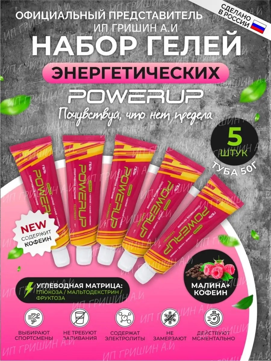 Энергетические гели Малина 50г * 5 шт Кофеин Натрий Калий