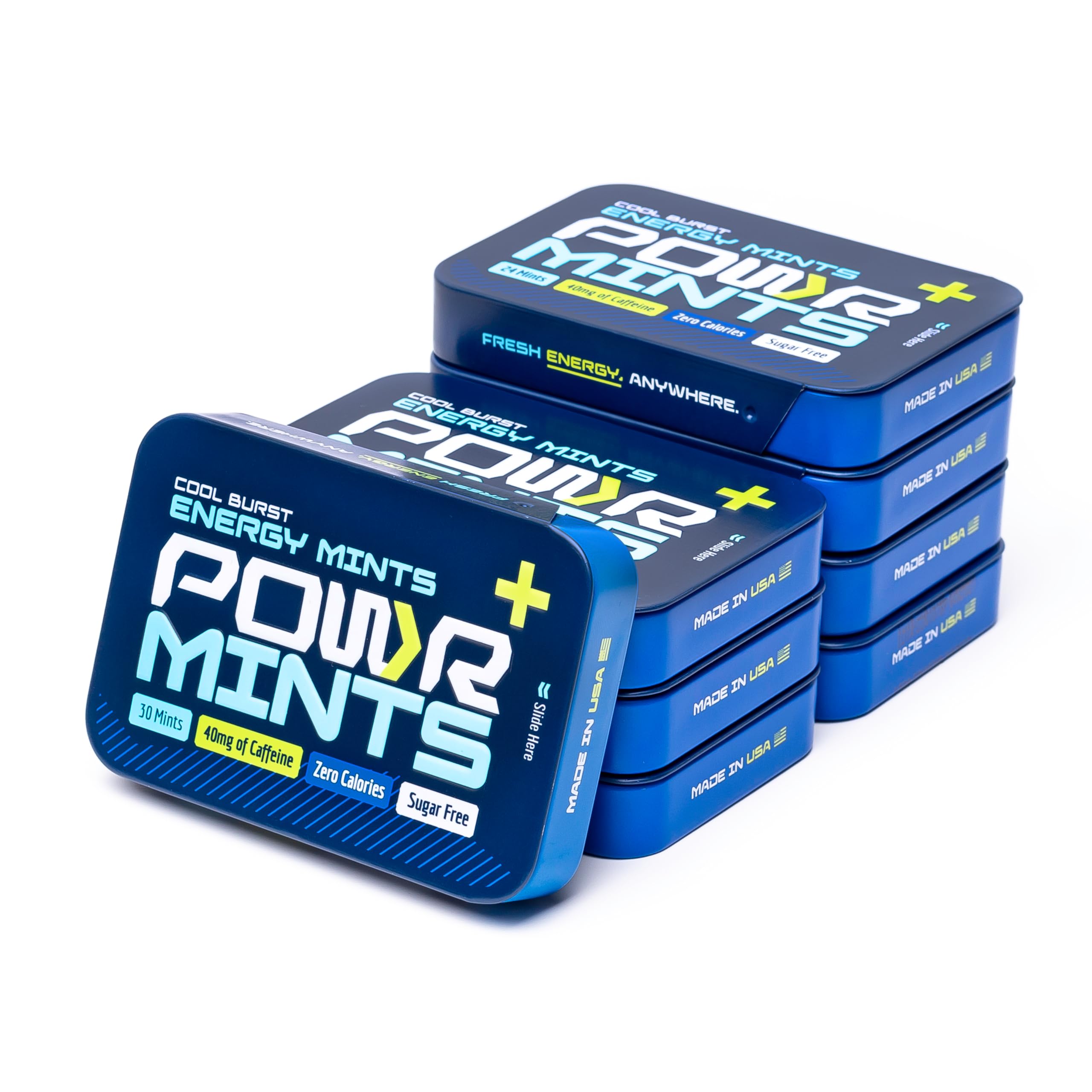POWR Energy - 8 Tin Bundle (192 Mints Total) - 40mg of Caffeine P/Mint - Sugar Free - Zero Calories - Pre-Workout Cycling Running Endurance - Fast Acting Energy