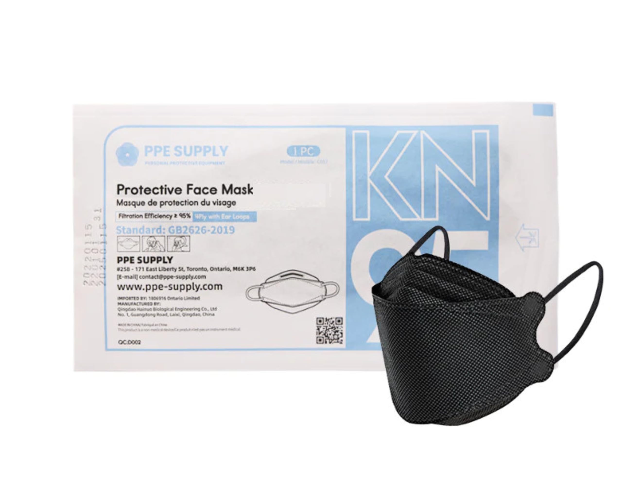 PPE SUPPLY CANADA Pack of 20 Adult (Regular) 4-Ply Individually Wrapped 3D Willow-Leaf Face Mask Disposable Face Masks Black