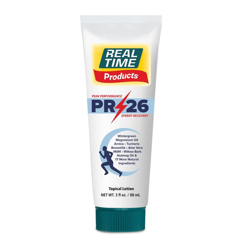 PR-26 by Real Time 3 fl oz Recovery Topical Lotion for Athletes - 26 Natural Ingredients Including Arnica Magnesium Oil Turmeric - Pre & Post Workout Muscle + Joint Rub for Athletic Lifestyle 3 Fl Oz Tube