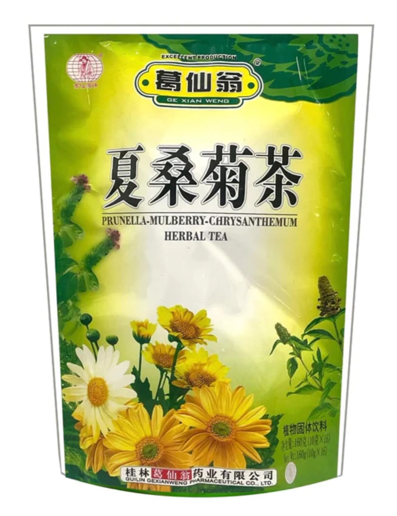 : Instant drink with blackberry and chrysanthemum. Ingredients: Sugar, blackberry, 20 , mulberry leaves 15 , chrysanthemum 15 .Description du produit Boisson Instantanée à la Brunelle de Mûrier et Chrysanthème. Ingrédients Sucre, brunelle, 20 , feuilles de mûrier 15 , chrysanthème 15 .Préparation pour Boisson Instantanée à la Brunelle de Mûrier et Chrysanthème - 160g (16g x 10) Sachet - Offre de 1 et 2 Sachets (2)