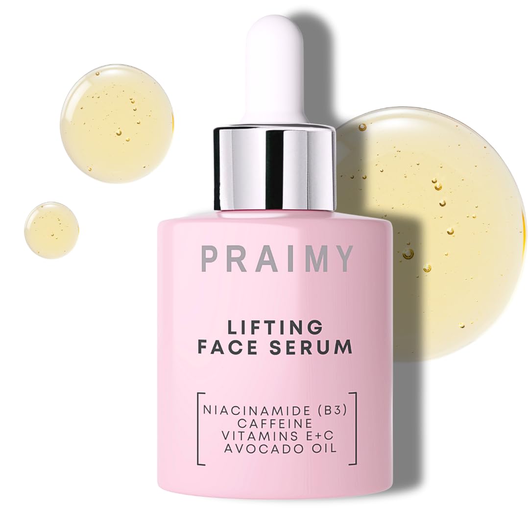 PRAIMY Lifting Face Serum with Niacinamide Caffeine Vitamin C & E Nourishing Botanical Extracts Avocado Oil Squalane & Escin Complex for Youthful Radiant-Looking Skin 1 fl oz