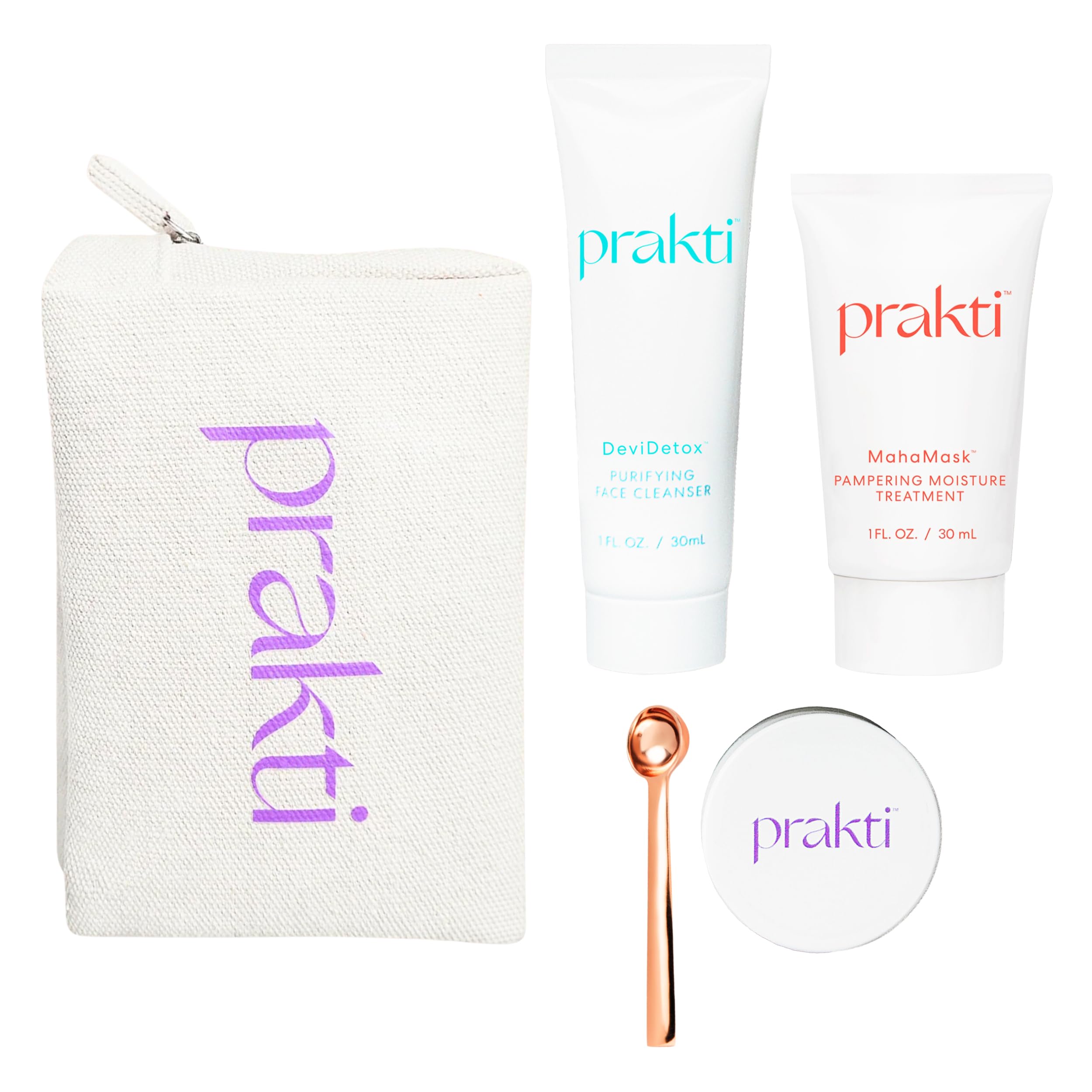 Prakti Path to Priti On-The-Go Essentials Set with Purifying Cleanser Exfoliator and Moisture Mask Travel Skincare Set