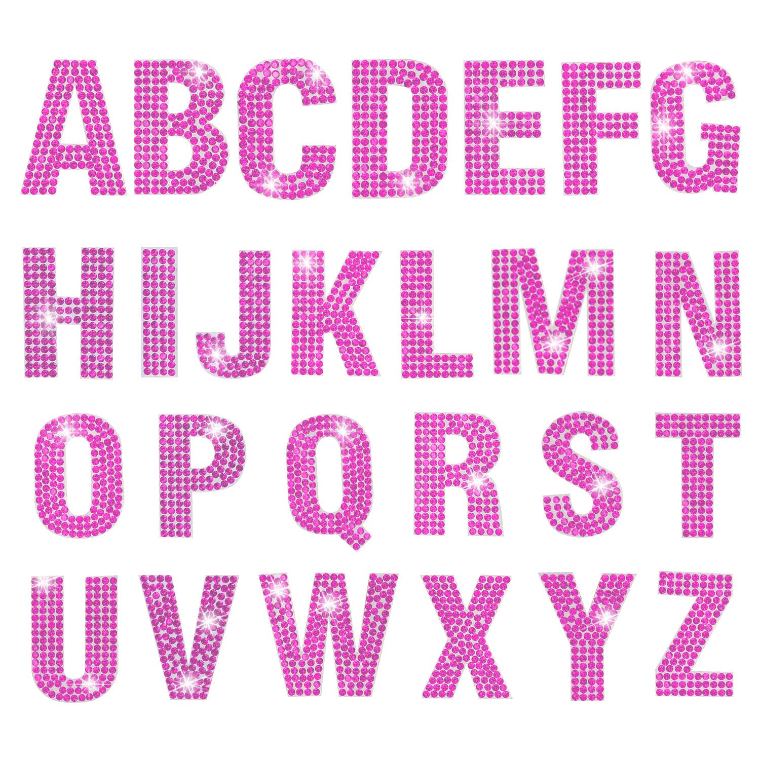 PRATIQUE Glitter Rhinestone Alphabet Letter Stickers, 26 Letters Self-Adhesive Stickers for DIY Art and Craft (Pink)