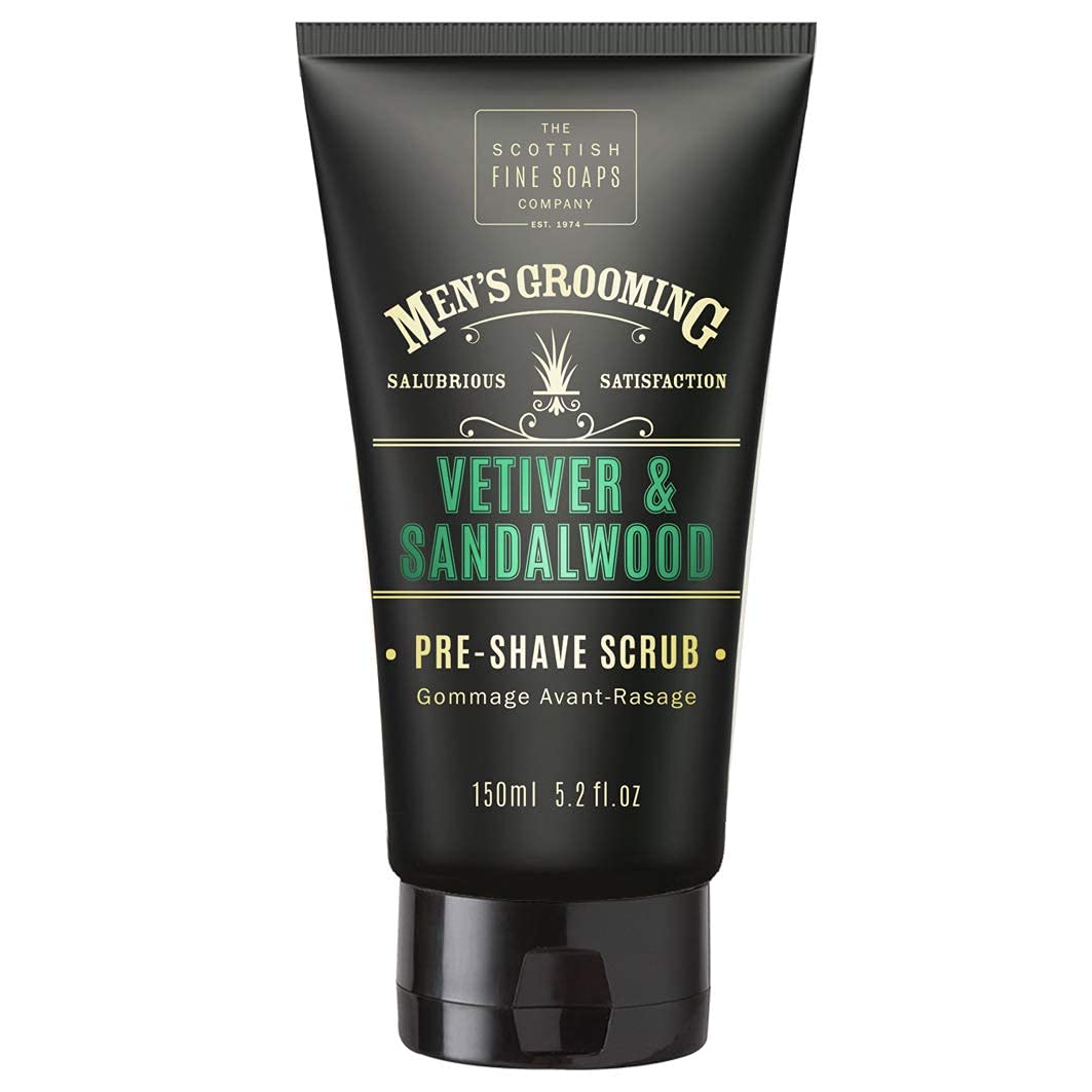 Scottish Fine Soaps Vetiver & Sandalwood Pre-Shave Scrub 150ml Part of the Men’s Grooming range. A charismatic, masculine range scented with rich, earthy notes of vetiver and sandalwood. The products are enhanced with powerful active ingredients including detoxifying charcoal, calming hemp oil and Epsom salts. Prepare your skin for shaving with this moisturising, gently exfoliating facial scrub. Gentle enough for frequent use, the scrub is made with charcoal, hemp oil and Vitamin E to protect skin and fragranced with the warm scent of Vetiver & Sandalwood. Presented in plastic tube with snap top cap. Proudly made in Scotland, Parabens-free. Directions for use: Massage into wet skin in circular motions to gently exfoliate, then rinse thoroughly before shaving. Ingredients: Aqua (Water), Lava Powder, Cetearyl Alcohol, Glycerin, Glyceryl Stearate, Butyrospermum Parkii (Shea Butter), Parfum (Fragrance), Prunus Amygdalus Dulcis (Sweet Almond) Oil, Phenoxyethanol, PEG-20 Stearate, Aminomethyl Propanol, Carbomer, Cannabis Sativa (Hemp) Seed Oil, Ethylhexylglycerin, Disodium EDTA, Tocopheryl Acetate (Vitmin E), Charcoal Powder, Limonene. View more products from The Scottish Fine Soaps Company or return to The English Shaving Company Homepage DIRECTIONS Massage into wet skin in circular motions to gently exfoliate, then rinse thoroughly before shaving.