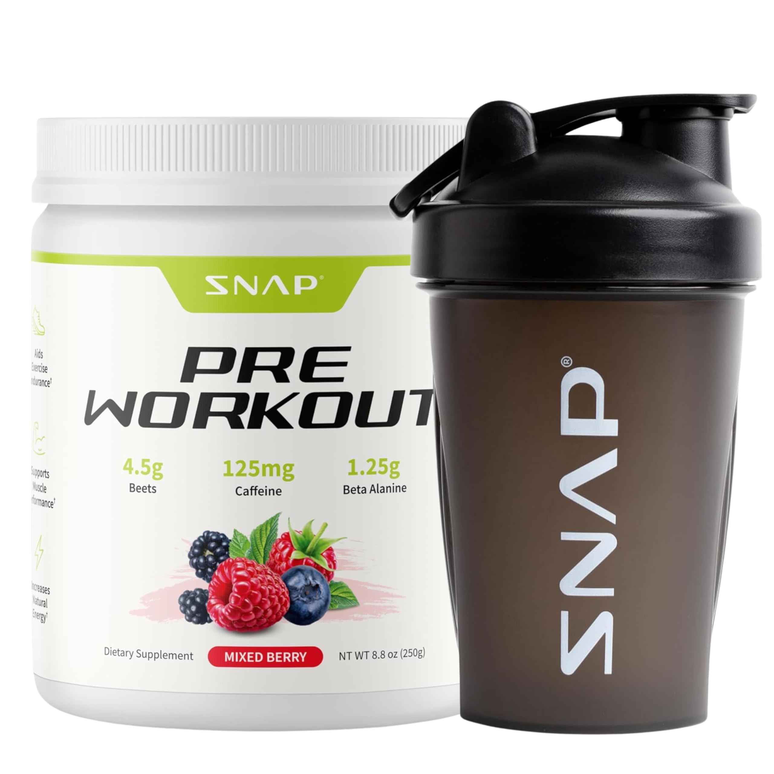 QUALITY YOU CAN TRUST: Snap Supplements delivers quality you can trust. Our vitamins and supplements are crafted by health experts and manufactured in the USA with globally sourced ingredients. Most of our supplements are vegan, plant based, caffeine free, sucralose free, soy free, allergen free, and contain no added sugar. EASY TO USE: Add one scoop of this pre workout powder for men and women to 6-8 oz of your beverage of choice, then blend, shake, or stir until fully dissolved. Enjoy the beverage to power through your workout, and repeat the process for continued energy and performance. SUPPORTS HEALTHY CIRCULATION: Our beetroot powder also includes collective nutrients to support healthy circulation for balanced energy, sustained performance and post work out recuperation. MUSCLE SUPPORT: We've enriched our pre workout powder with protein-building amino acids, like l arginine and beta alanine, to help optimize your work out efforts and promote muscle building. ENERGY SUPPORT: Our Pre-Workout formula features a long lasting nitric oxide response as well as energizing b-vitamin compounds to help you power through and extend peak aerobic performance.