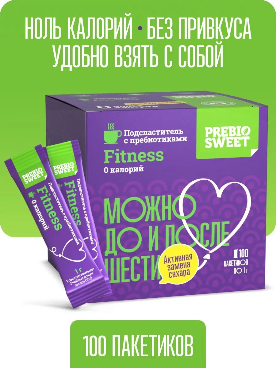 КБЖУ: 0/0/0/0. Ноль калорий! Чистый вкус сладости. Prebiosweet Fitness в 10 раз слаще сахара. Незаменим при безуглеводной диете для похудения и пп, на диабетическом питании и косметическом голодании, для спортсменов. Сахарозаменитель для диетического питания в стиках совершенно безопасен. Заменитель сахара порционный Пребиосвит Фитнес способствует похудению и поддержанию здоровой формы. Существуют различные виды: сахзам в таблетках и саше пакетиках, стевия порошок, аллюлоза, жидкий. Но признано, что самым безопасным для здоровья является натуральный эритритол или как его еще называют дынный сахар эритрол. Не имеет горечи как стевиозид. Не просто относится к категории низкокалорийные продукты, а содержит 0 калорий. Используется как сахарозаменитель для выпечки, подсластитель для напитков и десертов, добавки в кофе и чай, сладости без сахара. Можно добавлять в продукты правильного питания. Термостабилен. Любая еда для похудения с ним становится более здоровой. В составе Пребиосвит Фит несс содержится эритрит, сукралоза и 10% лактулозы, известной во всем мире как пребиотик для кишечника №1. Подходит для больных сахарным диабетом (диабетические продукты, продукты для диабетиков 2 типа, кетопродукты, диетические продукты для похудения, сладости для детей). 1 пакетик заменяет 2 чайные ложки сахара. Лактулоза стимулирует рост и жизнедеятельность полезной микрофлоры кишечника. Безопасный и вкусный 7 дней в неделю. я no sugar