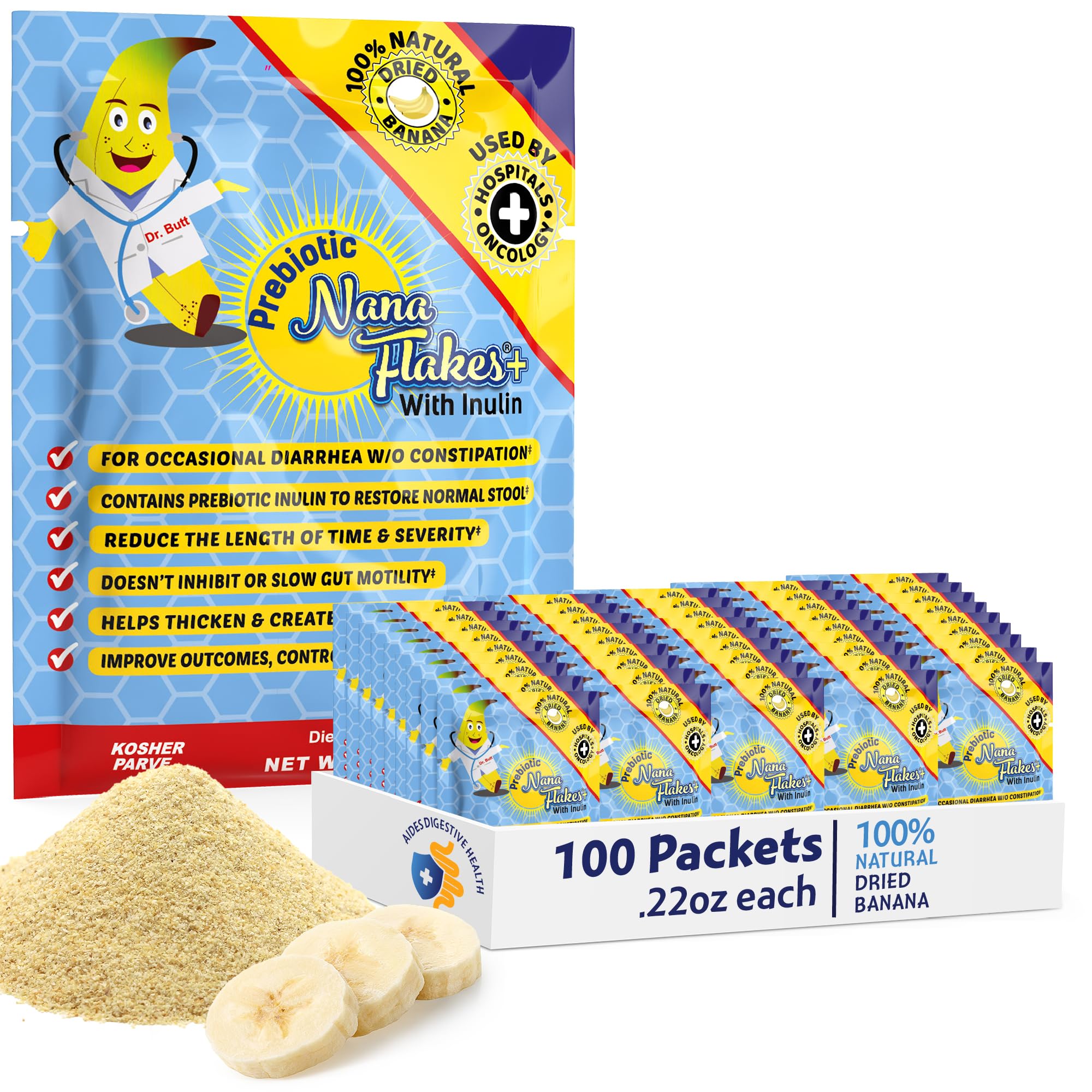 Prebiotic Nana Flakes 100% Pure Banana Flakes Medical Food Powder Decrease Fat Intake & Natural Remedy for Diarrhea & Heart Burn - Great Source of Fiber - Single Serve (100 Packets) Prebiotic 100 Single Serve Packets