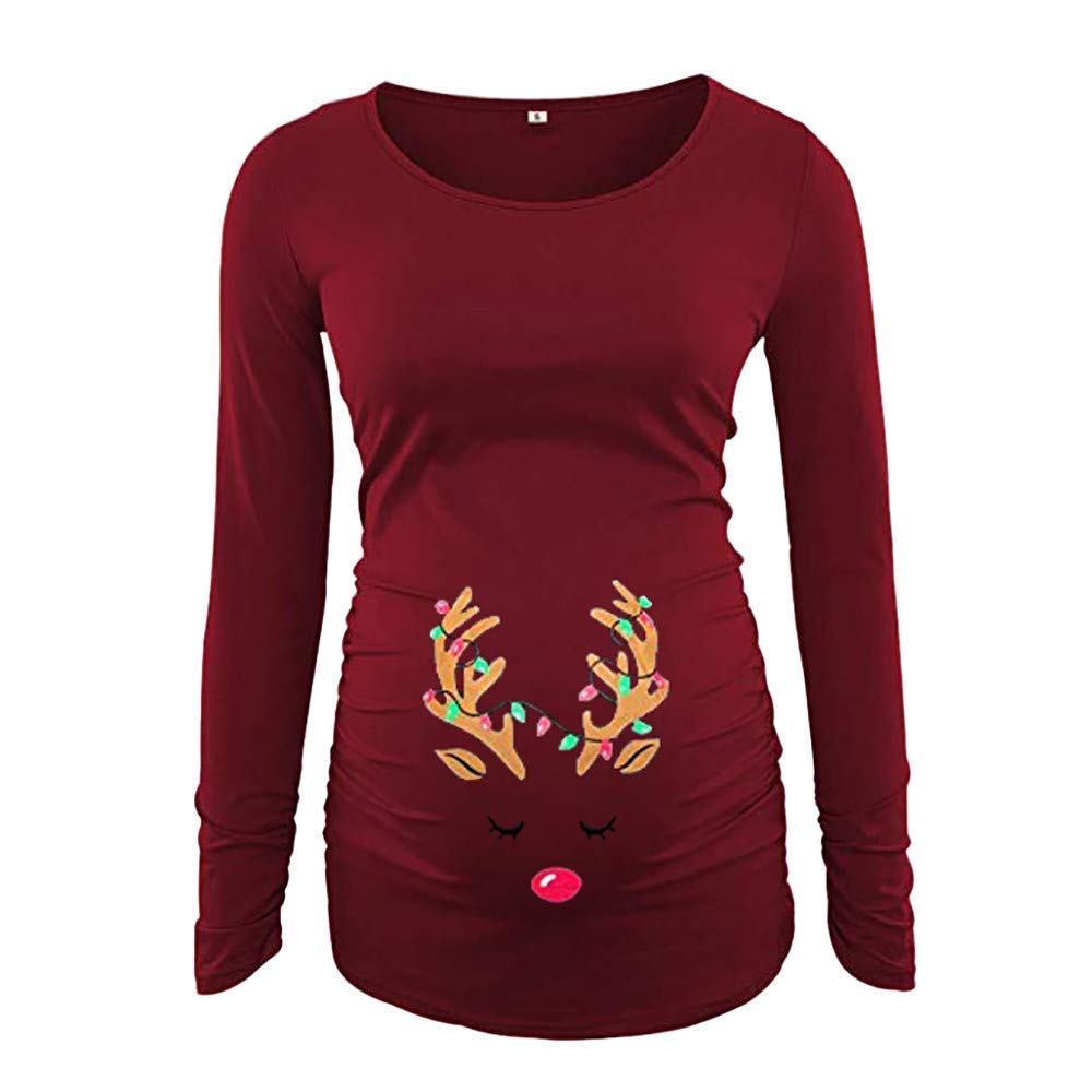 Pregnant Deer Christmas Maternity Top Women Casual Pullover Winter Clothing Warm Long Sleeves Hooded Tops XL Rot