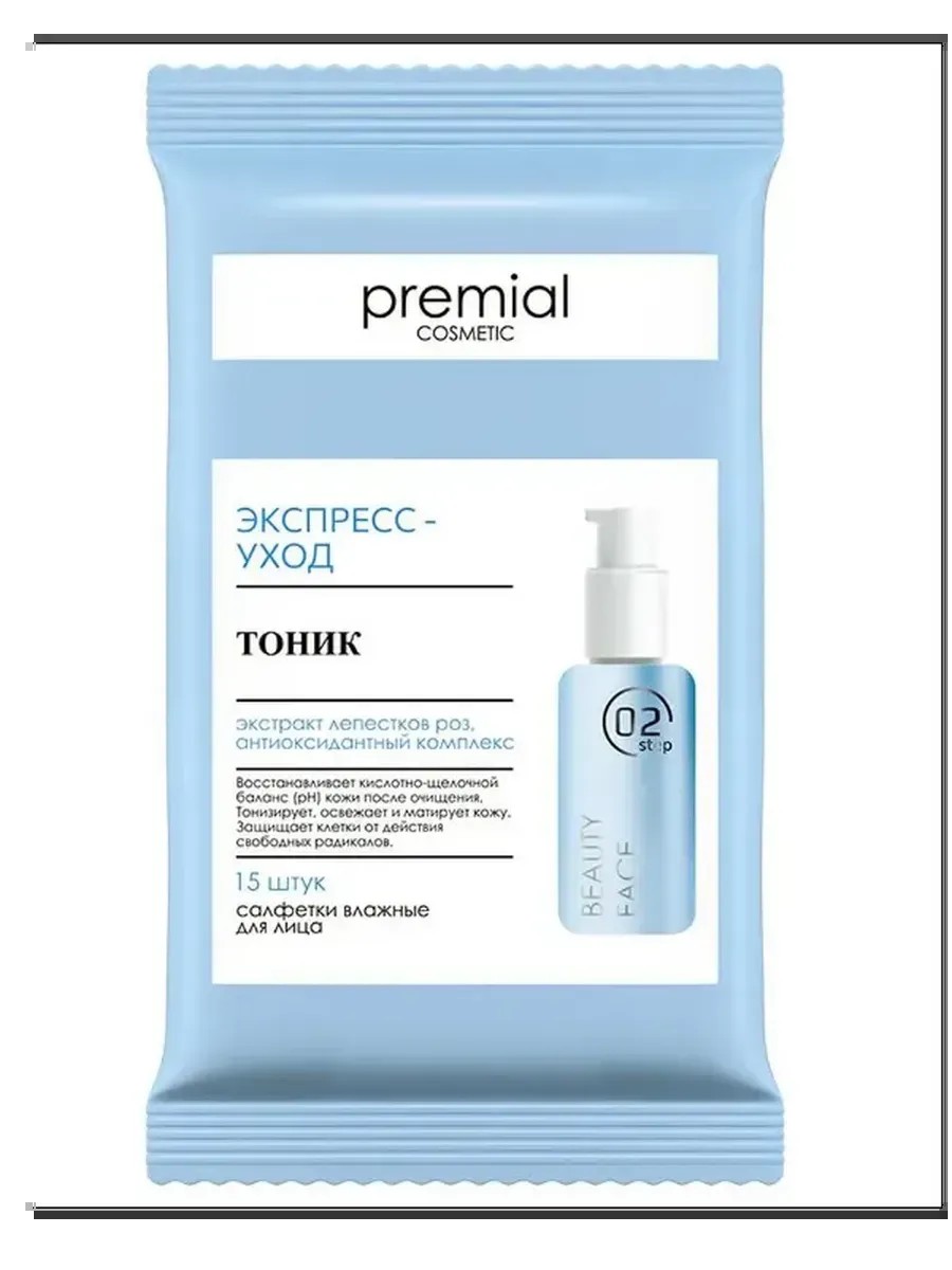 Влажные салфетки PREMIAL с тоником для лица — ваш второй этап экспресс-ухода за кожей. Тоник помогает восстановить естественный pH-баланс после очищения и подготавливает кожу к нанесению крема или сыворотки. Регулярное применение способствует выравниванию тона и текстуры кожи, придаёт ей свежий и сияющий вид. В составе салфеток — экстракт лепестков роз и активный компонент на основе женьшеня. Компактная упаковка позволяет всегда носить салфетки с собой и использовать в любое удобное время.