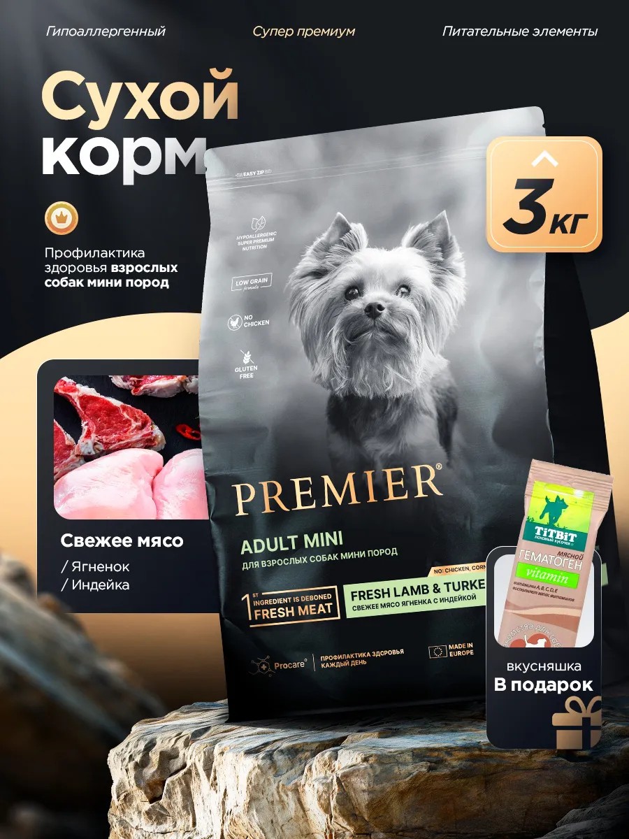 Сухой корм для собак Mini Adult ягненок и индейка 3 кг
