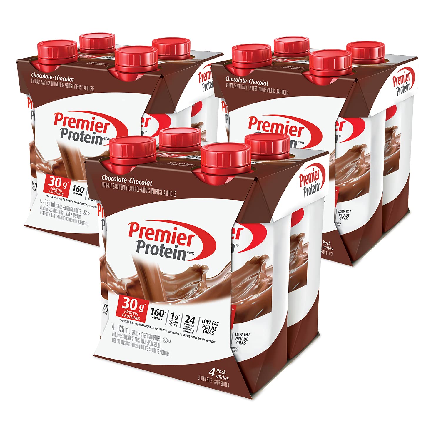 Each Premier Protein shake contains 30 grams of protein, complete with all the essential amino acids, 1g of sugar, 3-5g carbs (depending on flavor), 160 calories, 24 vitamins minerals, and is also low in fat. We use a blend of milk protein and casein in our shakes to help fuel muscles quickly and for several hours to help support your goals. Enjoy a shake as a healthy snack, a breakfast on-the-go, an afternoon snack, or as pre- or post-workout fuel. They are delicious as is but are also highly customizable. Try blending with your favorite fruits and vegetables for a delicious smoothie or adding to cereal or oatmeal. Try our chocolate, vanilla, caramel, Strawberries cream and bananas cream.Skip the hassle of protein powder with the convenience of this ready-to-drink protein shake great on the go nourishment that pairs well with coffee, cereal, a pancake recipe, or in a smoothie. Guilt free indulgence: 1g sugar, 5g carbs, 160 calories and low fat gluten free, no soy ingredients Keto and bariatric friendly, Kosher. 24 Vitamins and minerals: antioxidants vitamins C, E plus zinc to support a healthy immune system as part of a healthy diet and lifestyle 50 daily value of Calcium and 30 daily value of vitamin D. 30g of protein to help curb your hunger, as a mid-day snack or for post workout recovery includes all essential amino acids. Chocolately goodness: smooth and creamy, rich chocolate flavored shake winner of American masters of taste gold medal for superior tasting ready-to-drink protein beverages.