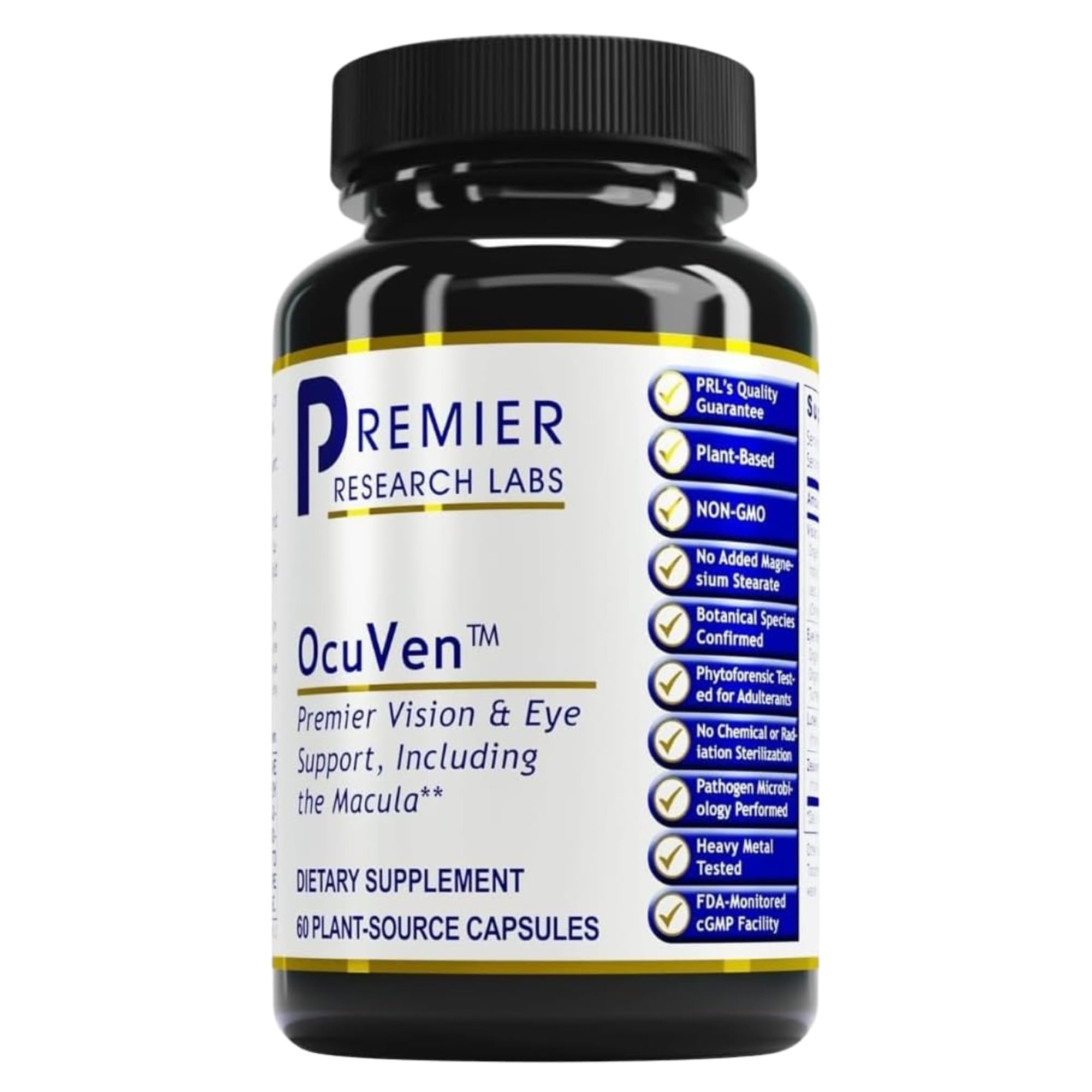 PREMIER-QUALITY SUPPLEMENTS: At Premier Research Labs, we pride ourselves in creating high quality supplements using sustainably meticulously sourced natural ingredients from around the globe. SUGGESTED USE: To support macular and retina health, take 1 capsule of our supplement for eye health daily with food, or as directed by a healthcare professional. SENIOR EYE CARE: As we age, it's essential to support our ocular health. Our eye supplement is ideal for adults over 50 and seniors looking for eye vitamins to help maintain healthy vision. NATURAL INGREDIENTS: Our eyesight improvement supplement is formulated with the carotenoids lutein and zeaxanthin, naturally sourced from marigold flowers rich in antioxidants crucial for eye health. VISION SUPPORT: Premier Research Labs OcuVen is a powerful vision supplement for adults containing a potent blend of carotenoids essential for maintaining healthy eyesight supporting macular health.
